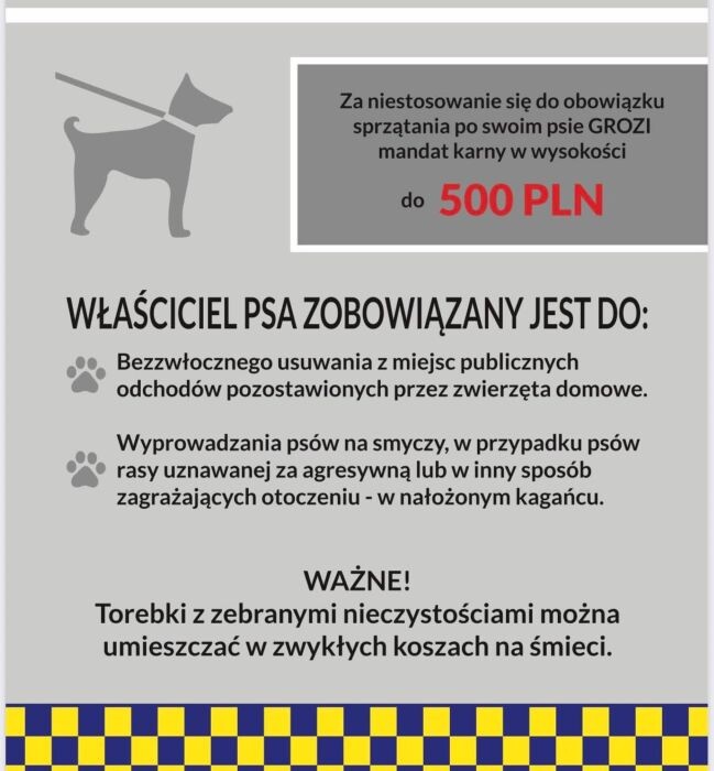 Za nieprzestrzeganie przepisów grozi mandat w wysokości do 500 zł. Strażnicy miejscy będą kontrolować parki, osiedla oraz popularne tereny spacerowe.