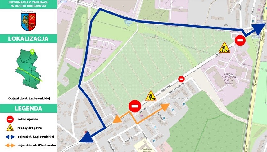 Od 2 grudnia rozpocznie się remont ulicy Łagiewnickiej na odcinku od ul. Ostatniej w Bytomiu do ul. Sportowej. W związku z tym zostaną wprowadzone objazdy.