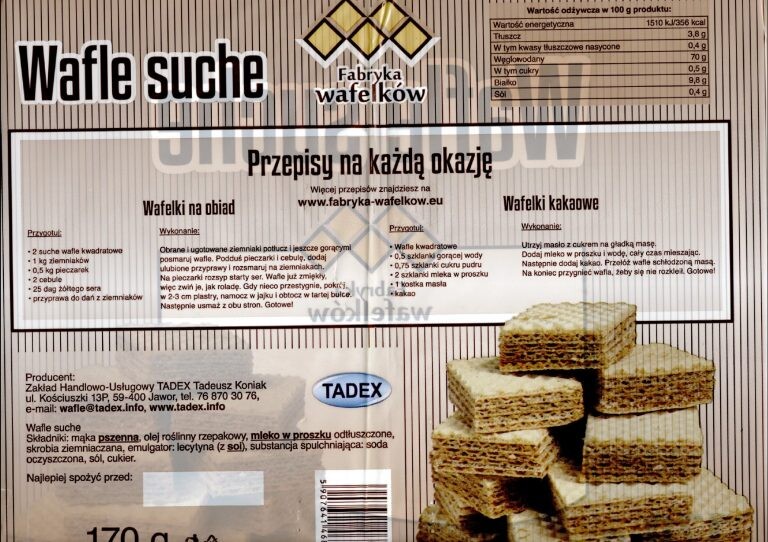 Popularne wafle, wafelki tortowe oraz uwielbiane przez dzieci chrupaki zostały zanieczyszczone. Ich spożycie jest ryzykowne, ponieważ może spowodować zakażenie pałeczką Salmonella. Produkty wycofane przez GIS zostały wyprodukowane przez Zakład Handlowo-Usługowy „Tadex” Tadeusz Koniak z Jawora.