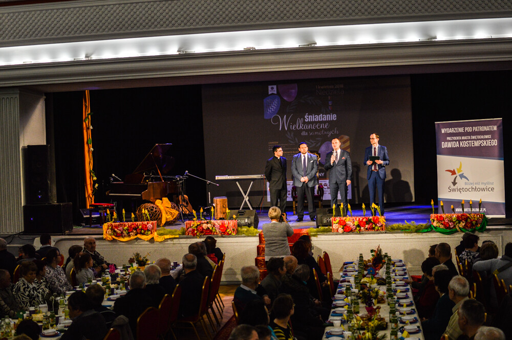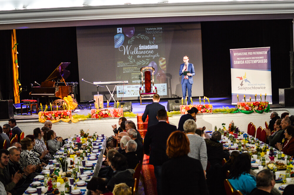 W głównej sali Centrum Kultury Śląskiej w Zgodzie odbyło się Wielkanocne Śniadanie dla samotnych. Przyszły tłumy, nie tylko mieszkańcy Świętochłowic.