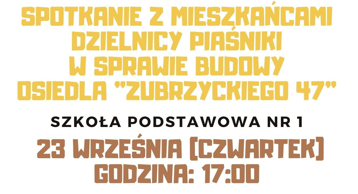 Spotkanie odbędzie się 23 września (czwartek) o godzinie 17:00 w Szkole Podstawowej nr 1 przy ul. Zubrzyckiego 38.