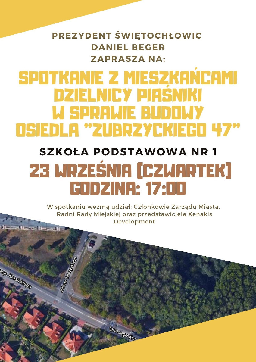 Prezydent Miasta Świętochłowice Daniel Beger zaprasza na spotkanie informacyjne w sprawie budowy osiedla "Zubrzyckiego 47".
