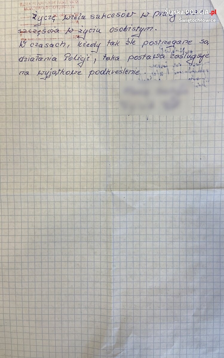 Stróże prawa, ratując mężczyznę od upadku z wysokości, sami stanęli w sytuacji narażenia własnego życia i zdrowia. Dzięki szybkiej reakcji starszego aspiranta Rafała Gabrysia i sierżanta sztabowego Macieja Wardasa nie doszło do tragedii. Na ręce Komendanta Miejskiego Policji w Świetochłowicach wpłynął list od wdzięcznej rodziny 90-letniego seniora.