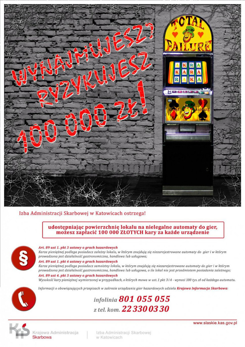 Warto przypomnieć, że z dniem 1 kwietnia 2017 roku weszły przepisy znowelizowanej ustawy o grach hazardowych. Za posiadanie nielegalnych automatów grożą surowe kary pieniężne tj. 100 tys. zł od jednego automatu. Takiej karze podlega zarówno urządzający nielegalne gry hazardowe, jak i właściciel lokalu, w którym taki proceder się odbywa. Dodatkowo za urządzanie gier hazardowych wbrew przepisom ustawy lub warunkom koncesji, lub zezwolenia grozi odpowiedzialność karna – wysoka kara grzywny, kara pozbawienia wolności do lat 3, albo obie kary łącznie.