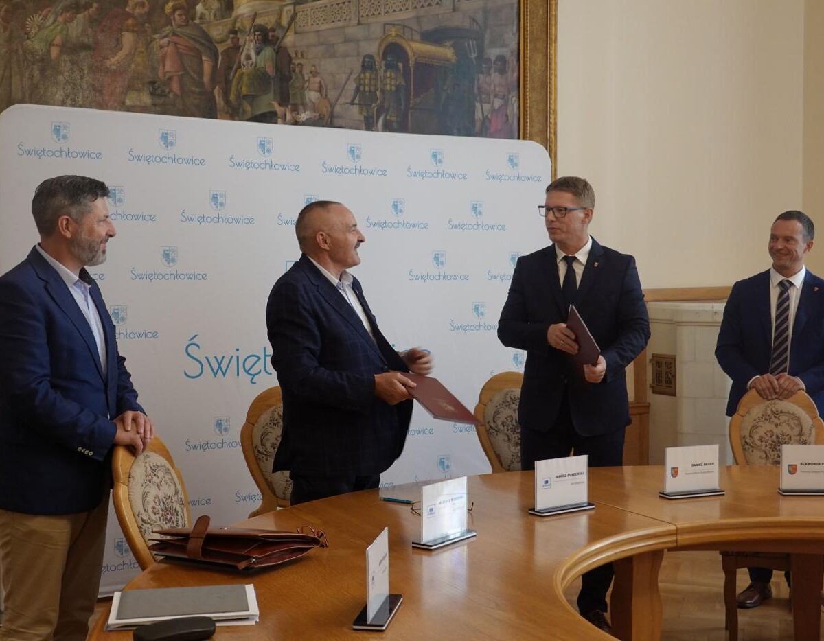 W uroczystym podpisaniu umowy wzięli udział: Prezydent Świętochłowic – Daniel Beger, Zastępca Prezydenta – Sławomir Pośpiech, Naczelnik Wydziału Inwestycji – Robert Kamiński oraz przedstawiciele przedsiębiorstwa HB-UNIBUD SA - Janusz Olszewski, Mariusz Borowski i Józef Czulak.