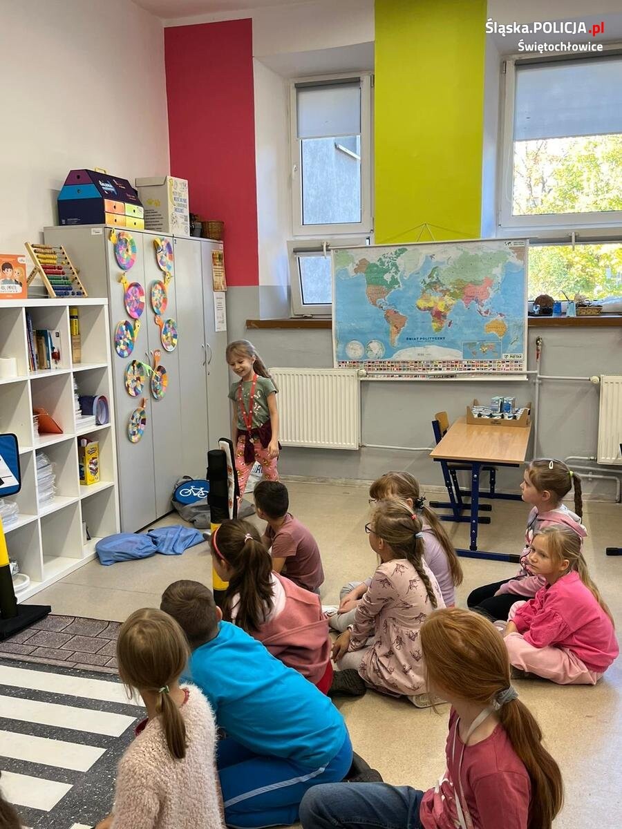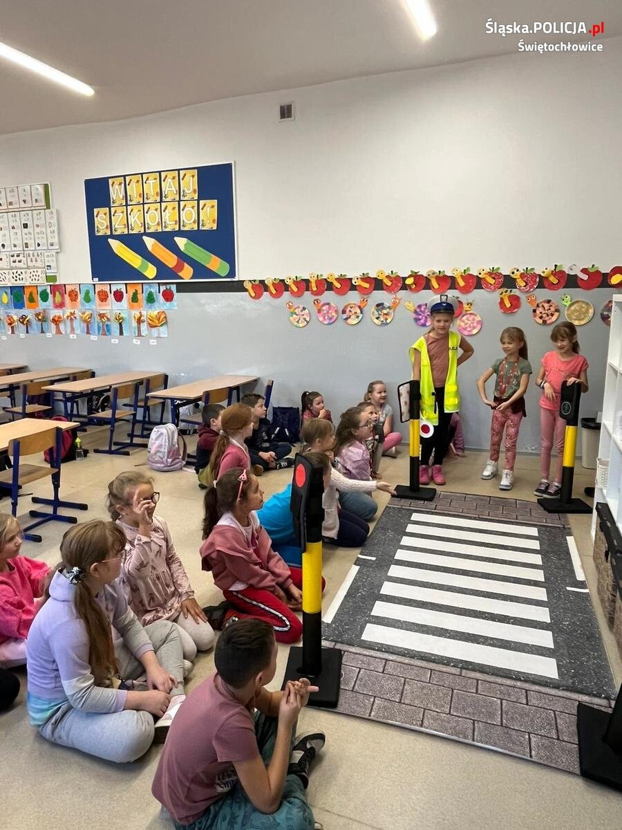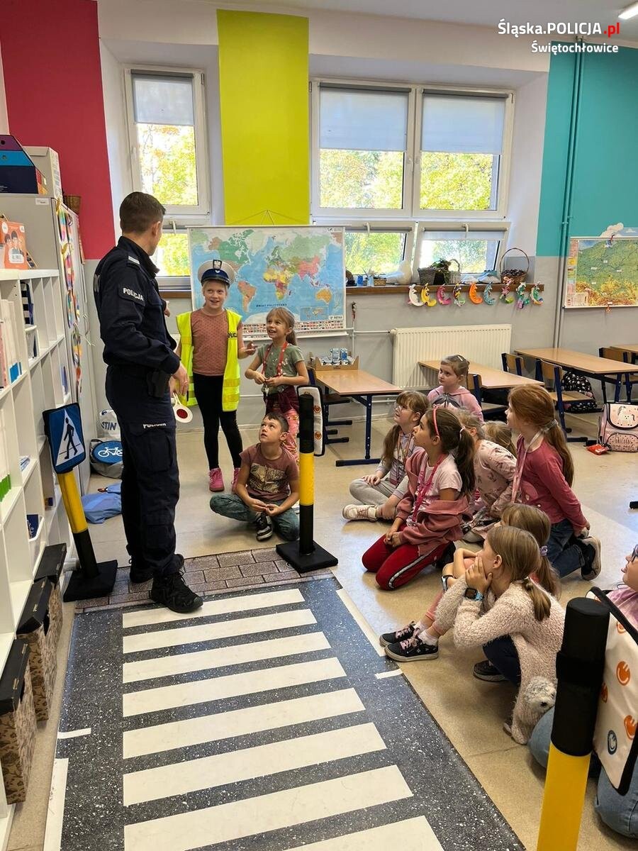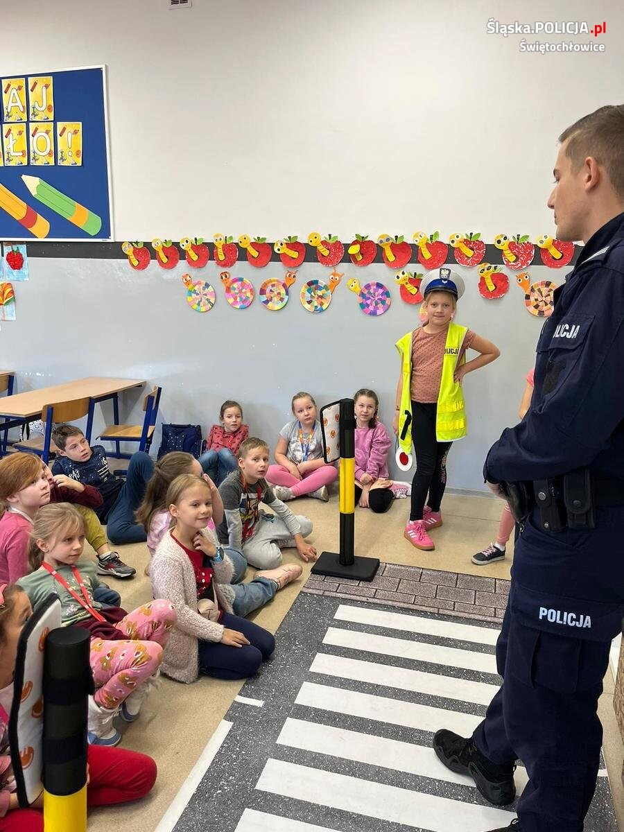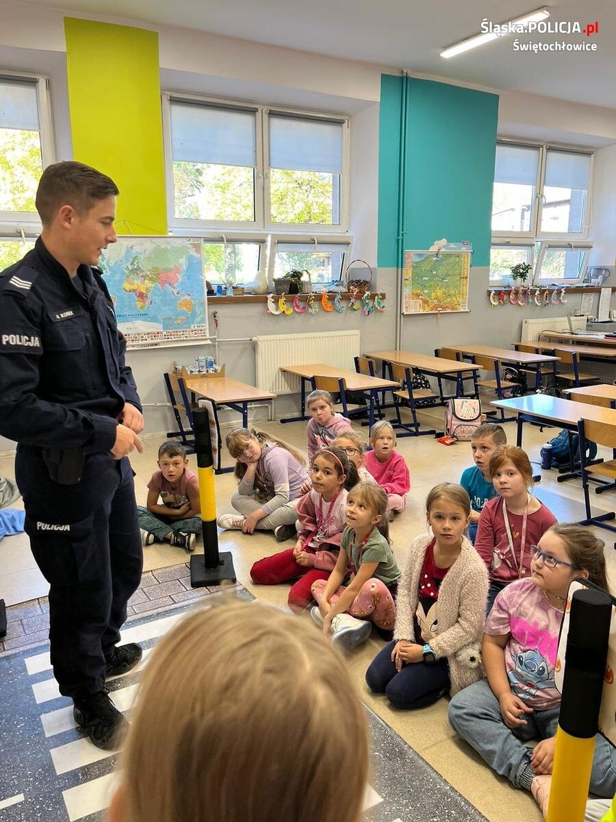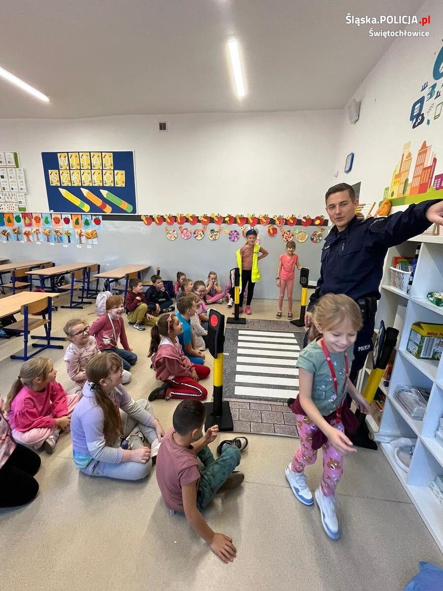 Świętochłowiccy policjanci przeprowadzili cykl spotkań z uczniami Szkoły Podstawowej nr 4 na temat bezpieczeństwa pieszych. Uczniowie w formie zabawy uczyli się podstawowych zasad poruszania się po drodze.