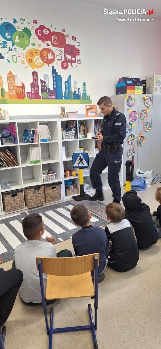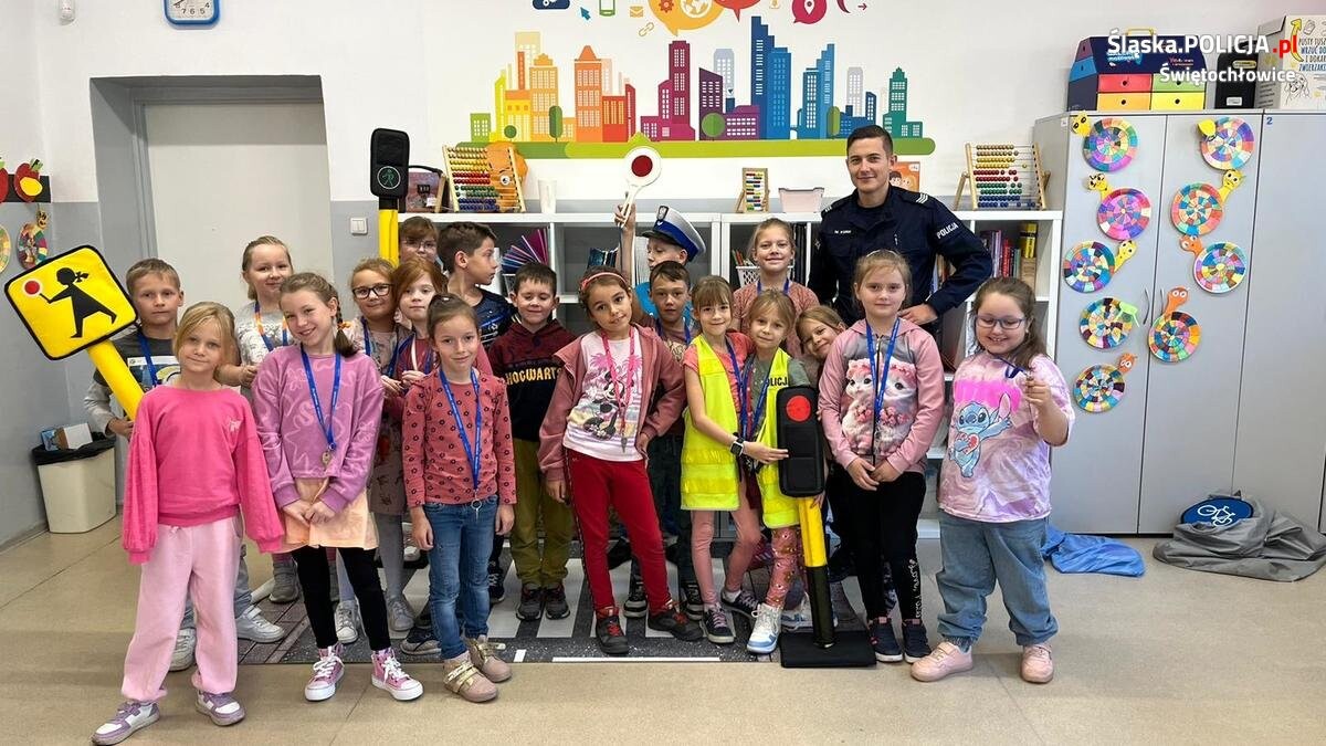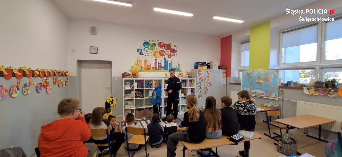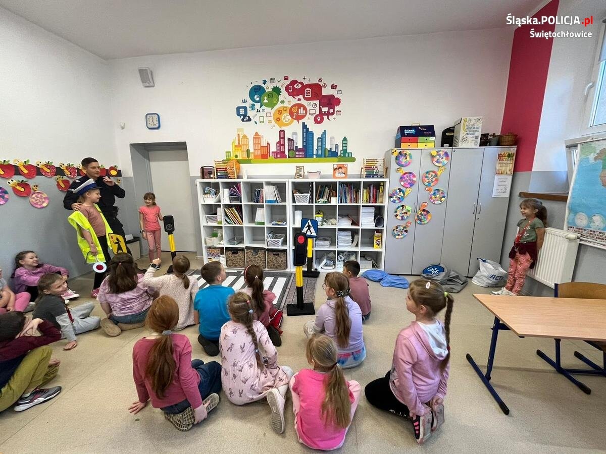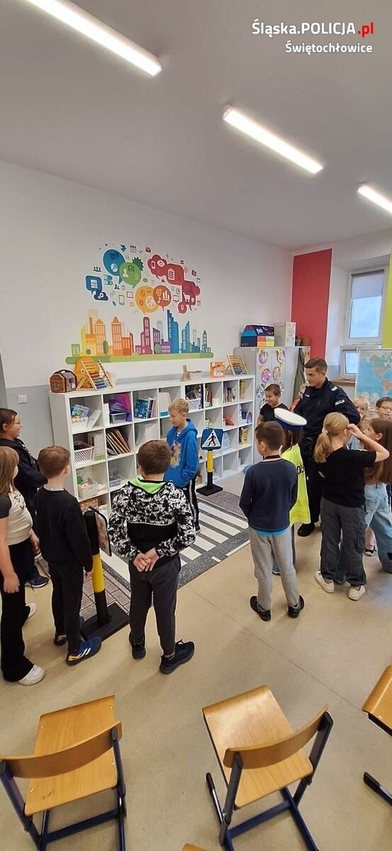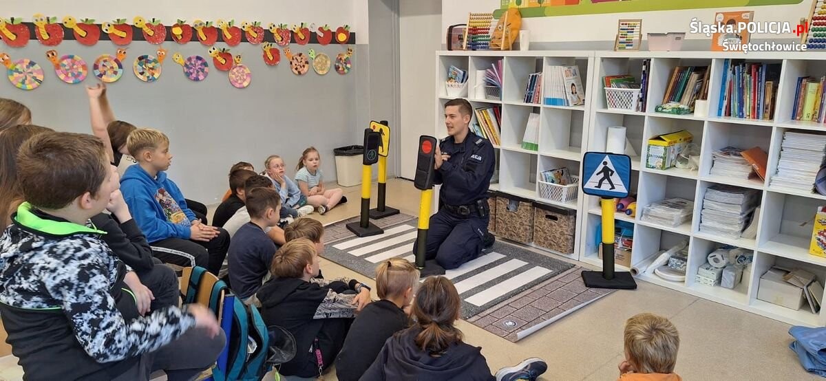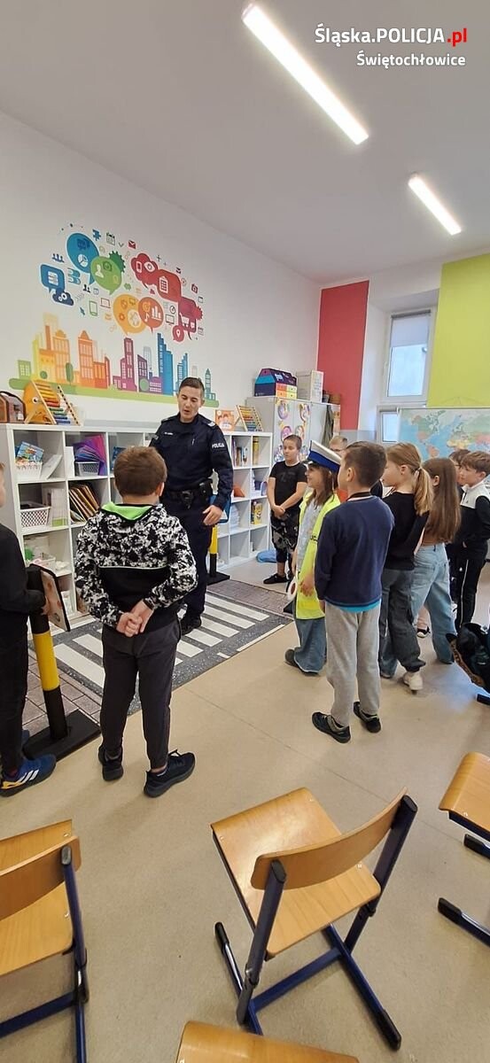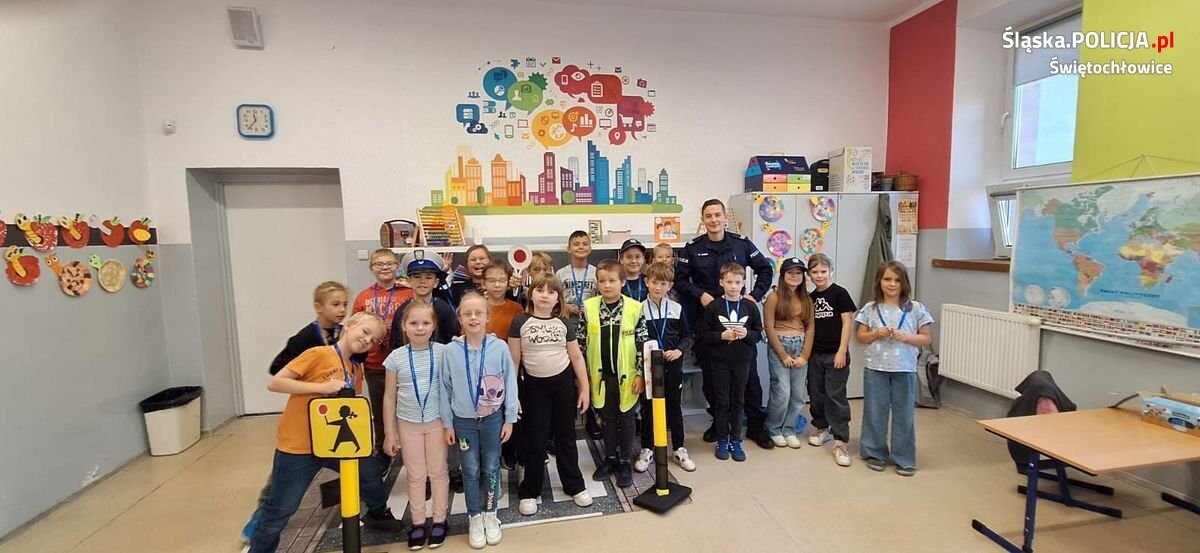 Świętochłowiccy policjanci przeprowadzili cykl spotkań z uczniami Szkoły Podstawowej nr 4 na temat bezpieczeństwa pieszych. Uczniowie w formie zabawy uczyli się podstawowych zasad poruszania się po drodze.