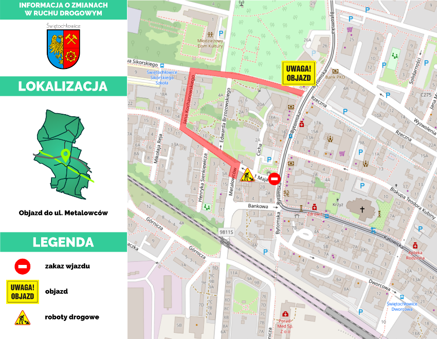 W związku z powyższym objazd do ulicy Metalowców poprowadzony zostanie ulicami Sikorskiego, Jana Kochanowskiego i 1-go Maja.