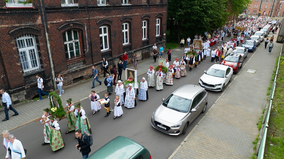 Dzisiaj po uroczystej mszy świętej z kościoła pw. św. Augustyna w dzielnicy Lipiny wyruszyła tradycyjna procesja Bożego Ciała. Na czele kobiety, mężczyźni, młodzież i dzieci w tradycyjnych, śląskich strojach. Co jeszcze sprawia, że to jedyna taka procesja na Śląsku?