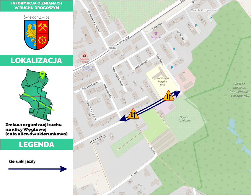 Dnia 26 kwietnia 2019 r. została wprowadzona zmiana organizacji ruchu w ciągu ulicy Węglowej w Świętochłowicach.