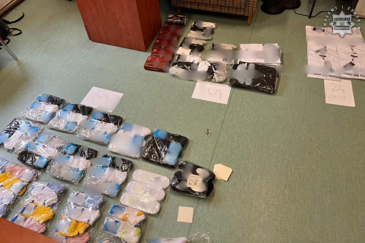 Bazując właśnie na takich ustaleniach, świętochłowiccy mundurowi wpadli na trop osoby, która za pośrednictwem portalu społecznościowego wprowadzała do obrotu towary, oznaczone podrobionymi znakami towarowymi. Pod ustalonym adresem zastali zdziwionego 75-letniego mężczyznę. W trakcie przeszukania mieszkania policjanci zabezpieczyli ponad 1700 sztuk odzieży, które były oznaczone zastrzeżonymi znakami światowych marek. Wartość rynkowa oryginałów została oszacowana na kwotę przekraczającą 200 tysięcy złotych. Starszy mężczyzna tłumaczył, że rzeczy te należą do jego 16-letniego wnuka, a on jedynie pozwolił mu magazynować te rzeczy. Widział, że wnuk je sprzedaje przez internet, jednakże nie miał pojęcia, że ubrania te są podrobione.