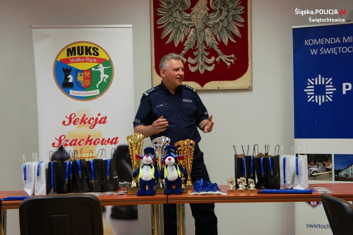 W środę odbyły się rozgrywki szachowe o Puchar Komendanta Miejskiego Policji w Świętochłowicach. W szranki turniejowe stanęła liczna grupa młodzieży, świętochłowiccy dzielnicowi oraz policjanci z wydziału prewencji. W przerwie, podczas podsumowania rozgrywek mundurowi przeprowadzili prelekcję na temat bezpieczeństwa oraz pokazywali pracę policjantów „od kuchni”.