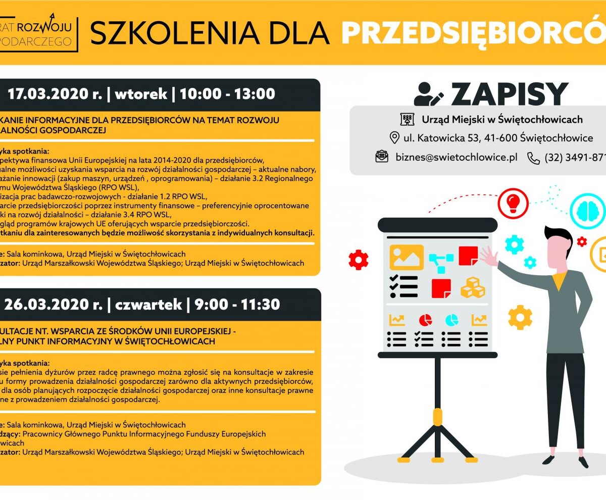 Zachęcamy do skorzystania z oferty bezpłatnych szkoleń dotyczących prowadzenia działalności gospodarczej organizowanych przez Urząd Miejski w Świętochłowicach.