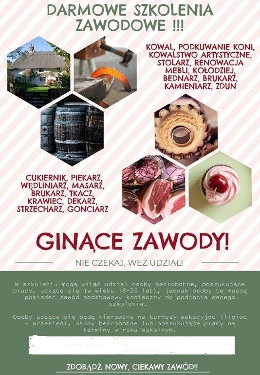 Dopuszczenie uczestnika do udziału w kursie związane jest z posiadaniem przez niego kwalifikacji w zawodach pokrewnych. Szkolenia będą prowadzone m.in. w zawodach: kowal, stolarz, brukarz, zdun, cukiernik, piekarz, wędliniarz, tkacz, dekarz.