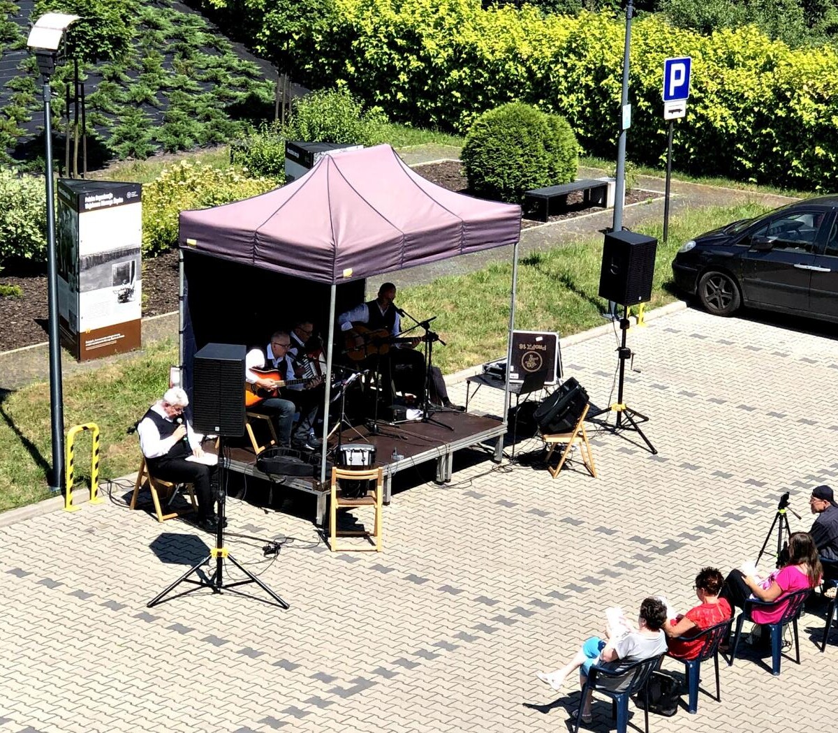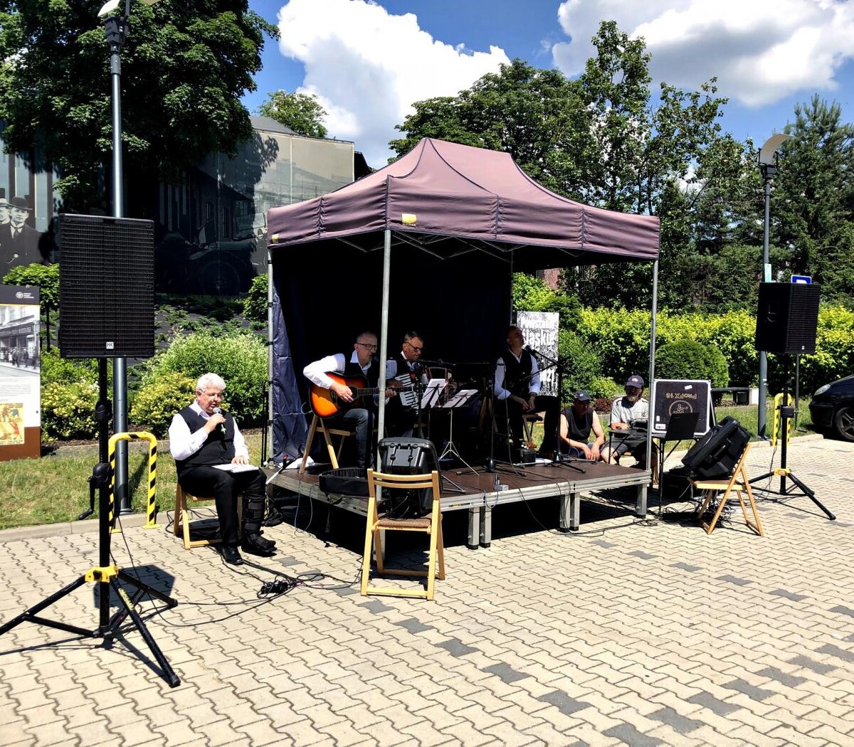 Zespół "Szwarne Karlusy" w niedzielę na placu przed Muzeum Powstań Śląskich dał koncert grając pieśni i piosenki powstańcze.
