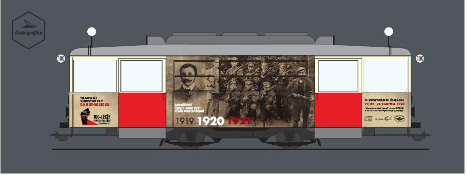 Tramwaj będzie oznakowany nr 100 (100-lecie II Powstania Śląskiego) i oklejony na zewnątrz grafikami z historycznymi treściami o Powstaniach Śląskich.