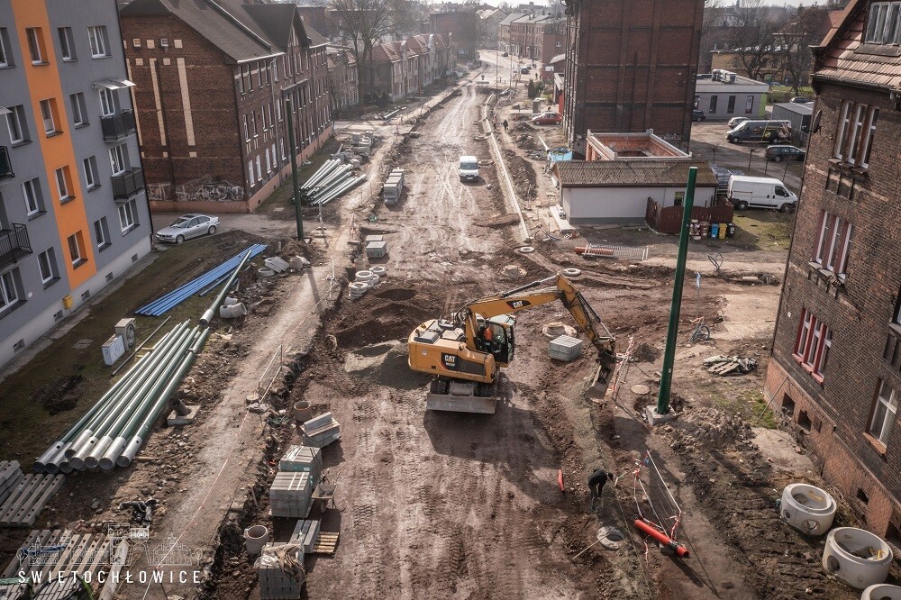 Trwa przebudowa układu komunikacyjnego w ciągu ul. Łagiewnickiej w Świętochłowicach. Inwestycja ta realizowana jest od ul. Barlickiego aż do granicy z Bytomiem. Jak wygląda postęp prac?