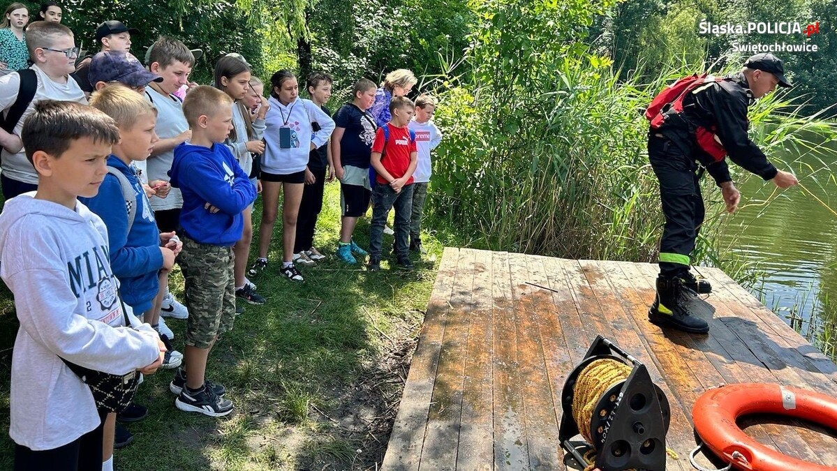 5 czerwca, wraz z zaprzyjaźnionymi Służbami Straży Miejskiej i Państwowej Straży Pożarnej, przy stawie Magiera spotkali się z uczniami klas 4 świętochłowickich szkół podstawowych. Współprowadzącym był Miejski Zarząd Oświaty ze Świętochłowic. Głównym tematem spotkania były nadchodzące, czyli „Bezpieczne wakacje”, które sprzyjają beztroskim zabawom, a to wiąże się niestety z wieloma zagrożeniami. W trakcie środowych zajęć edukacyjnych, stróże prawa omówili z uczestnikami zasady bezpieczeństwa podczas pobytu nad wodą, zabawy w domu i na podwórku oraz podstawy udzielania pierwszej pomocy. Poruszyli również tematykę bezpieczeństwa użytkowników skateparków, pumptracków oraz innym miejsc przystosowanych do jazdy na rolkach, hulajnogach oraz deskorolkach.