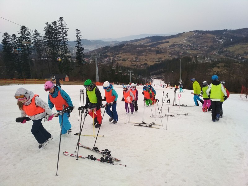 Na stokach Małego Rachowca w Zwardoniu uczniowie doskonalili nabyte wcześniej umiejętności, wielu z nich także stawiało swoje pierwsze kroki na nartach i uczyło się jazdy na snowboardzie.