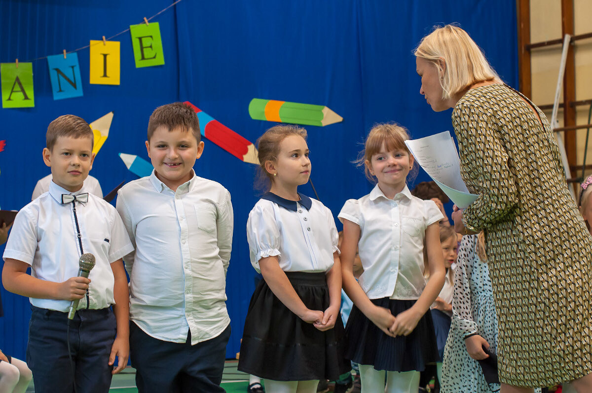 W uroczystości wzięli udział zaproszeni goście – Sławomir Pośpiech – Pierwszy Zastępca Prezydenta Miasta, Dorota Leszczyńska – Dyrektor Miejskiego Zarządu Oświaty w Świętochłowicach oraz rodzice pierwszoklasistów.