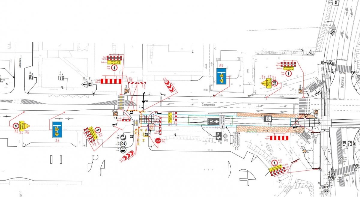 Policjanci ruchu drogowego Komendy Miejskiej Policji w Świętochłowicach apelują do kierowców korzystających ze skrzyżowania ulic: Chorzowskiej i wjazdu do CH Omni w Świętochłowicach o uwzględnienie tymczasowych zmian w organizacji ruchu.