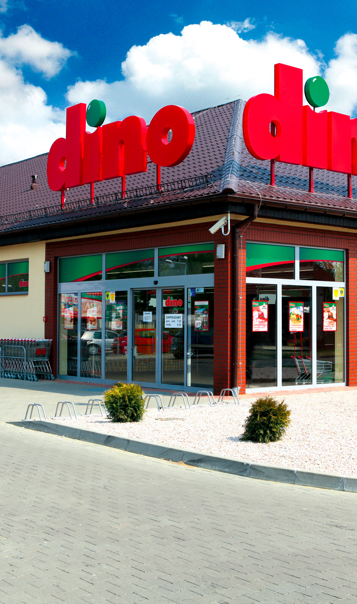 Dino to ogólnopolska sieć średniej wielkości marketów spożywczych zlokalizowanych w pobliżu miejsc zamieszkania klientów, które są czynne od poniedziałku do soboty oraz w niedziele handlowe w godzinach od 6:00 do 23:00. Sieć liczy już 1496 sklepów, a ich powierzchnia sprzedaży wynosi 582,6 tys. m2. Jak wskazuje biuro prasowe, w 2020 r. Dino Polska S.A. zakończyła proces inwestycyjny dotyczący uruchomienia 278 sklepów. Otwarto już 255 sklepów, a 23 oczekują na otwarcie. W przypadku tych drugich proces uzyskiwania zgód na uruchomienie został opóźniony w związku z sytuacją epidemiologiczną. Z kolei rok wcześniej, w 2019, uruchomione zostały 243 nowe sklepy.