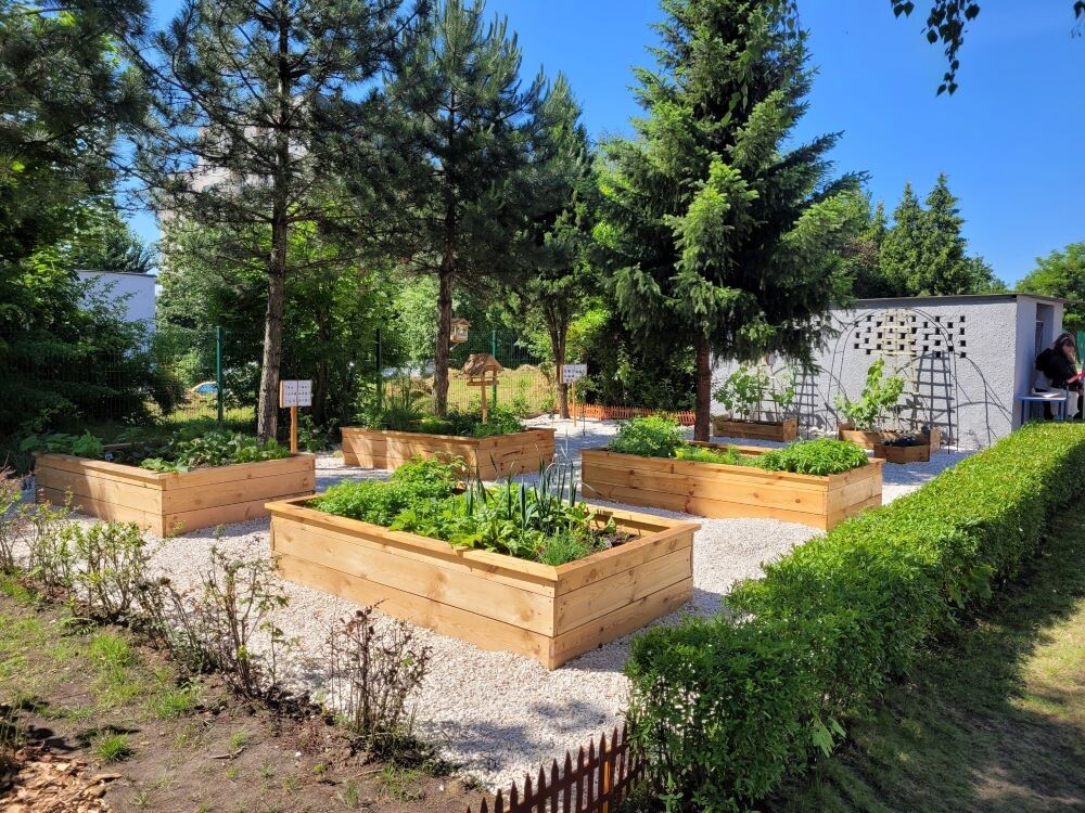Szkolny ogród „Zielona kraina spokoju” to miejsce, które nie tylko ma służyć edukacji – ma być także miejscem, w którym uczniowie mogą odpocząć na łonie natury. Z tego powodu podzielono go na dwie strefy: edukacyjną oraz edukacyjno-relaksacyjną. W pierwszej z nich znajdują się warzywa, zioła, drzewa i krzewy owocowe. W strefie edukacyjno-relaksacyjnej będą odbywały się lekcje, lecz uczniowie będą mogli również przychodzić tam, aby się odprężyć i zrelaksować.