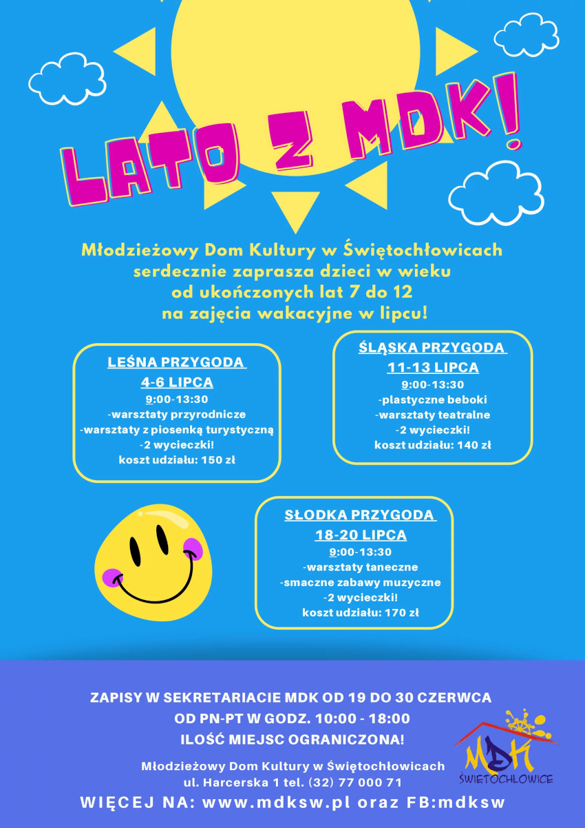 Młodzieżowy Dom Kultury w Świętochłowicach serdecznie zaprasza dzieci w wieku od ukończonych lat 7 do 12
