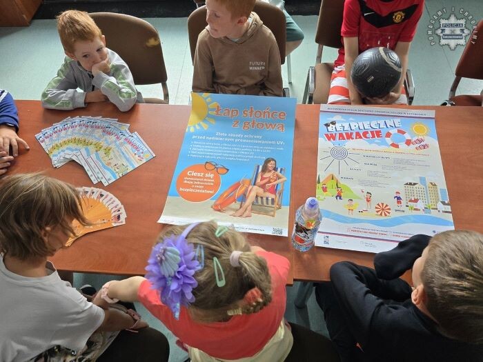 Podczas wizyty dzieci spotkały się z policjantami oraz przedstawicielami chorzowskiego sanepidu, którzy wspólnie przeprowadzili prelekcję na temat bezpiecznych zachowań podczas wakacji. Uczestnicy półkolonii dowiedzieli się, jak zadbać o swoje bezpieczeństwo nad wodą, w lesie czy podczas wyjazdów w góry. Przypomniano im również podstawowe zasady ruchu drogowego, szczególnie te dotyczące poruszania się pieszo, na rowerze czy hulajnodze elektrycznej.