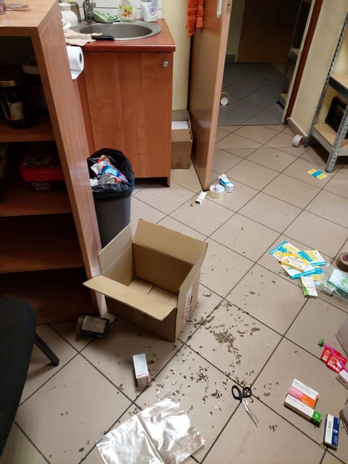 -Kradzież artykułów spożywczych (w tym mleka i jedzenia dla dzieci!) oraz leków, wybite okno, uszkodzone drzwi, zniszczone meble i spory bałagan - to bilans dzisiejszego włamania do magazynu żywności dla uchodźców z Ukrainy. Straty liczone są w tysiącach złotych. Ktokolwiek wzbogacił się dzisiejszej nocy, zrobił to kosztem tych, którzy potrzebują pomocy oraz kosztem tych, którzy niestrudzenie niosą ją od kilku miesięcy - mieszkańców i wolontariuszy. – mówi prezydent miasta Daniel Beger.