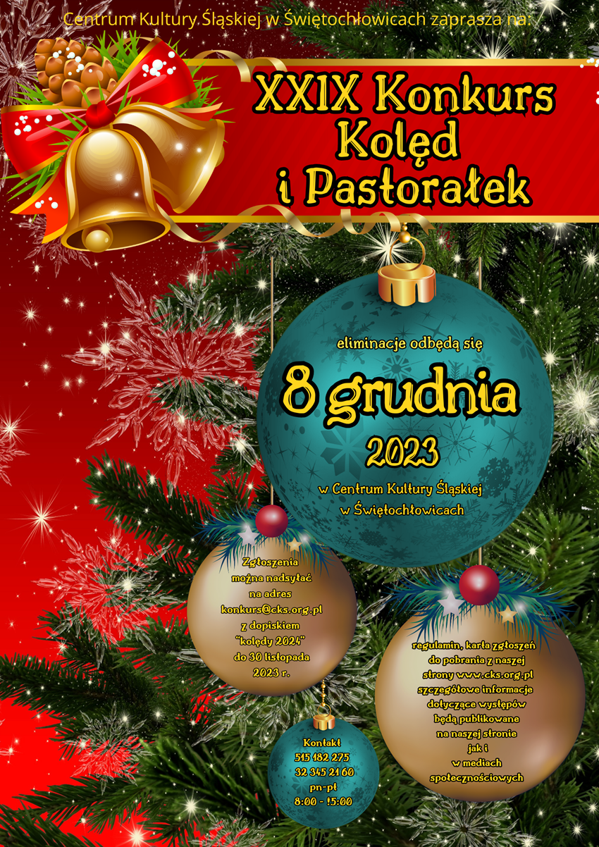 8 grudnia w Centrum Kultury Śląskiej w Świętochłowicach odbędą się eliminacje do XXIX Konkursu Kolęd i Pastorałek.