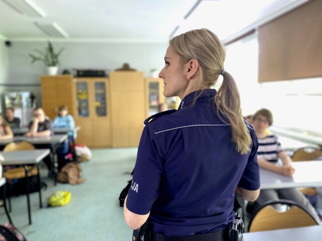 Mundurowa ze świętochłowickiej komendy w ramach zadań profilaktycznych opowiadała o tym, skąd biorą się zagrożenia w internecie oraz przekazała słuchaczom podstawowe informacje, jak nie stać się ofiarą przestępstw, przestrzegała przed zagrożeniami, z jakimi możemy się spotkać podczas korzystania z internetu, w tym portali społecznościowych czy komunikatorów.