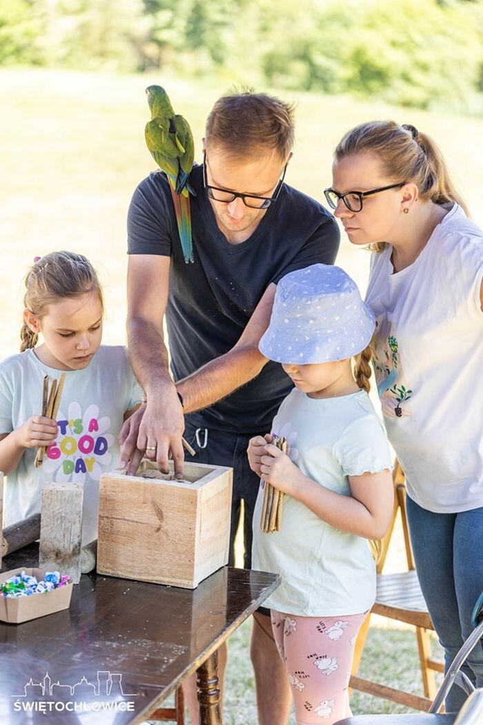 W sobotę osiedle Brzezina świetnie się bawiło! Uczestnicy eko-warsztatów „Owad w mieście” mieli okazję obserwować owady, tworzyć dla nich domki, a także wziąć udział w rozmowach dotyczących łąk kwietnych, a także ogólnej flory i fauny. Była to jedna z niepowtarzalnych okazji, aby przez szkło powiększające podziwiać żyjątka mieszkające w trawie! Uczestnikom towarzyszyła piękna, kolorowa papuga, która wszystkiemu bacznie się przyglądała!