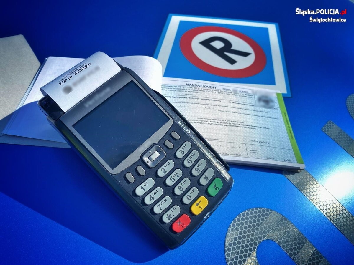 Świętochłowiccy policjanci, pełniąc służbę na drogach miasta, korzystają z terminali płatniczych. Aby poprawić jakość i skuteczność w działaniu, funkcjonariusze systematycznie otrzymują nowoczesny sprzęt i wyposażenie do służby. W tym zakresie korzystają także z nowinek technicznych oraz zmian w przepisach. Ponieważ niemal każdy z nas posiada konto z kartą płatniczą, radiowozy drogówki są wyposażone w mobilne terminale płatnicze. Umożliwiają one płacenie kartą bezgotówkowo za popełnione wykroczenie bezpośrednio na miejscu kontroli drogowej. Taką formę płatności umożliwiło Rozporządzenie Prezesa Rady Ministrów z 4 września 2017 roku. Płatność kartą pozwala ukaranemu na uniknięcie opłat dodatkowych za przelew w banku, czy na poczcie, jak również skraca i upraszcza procedurę uiszczenia grzywny. Dzięki możliwości płatności za mandat kartą cała czynność trwa bardzo krótko i nie różni się niczym od płatności za zakupy w sklepie. Osoba ukarana otrzymuje druk mandatu i potwierdzenie opłaty z terminala.