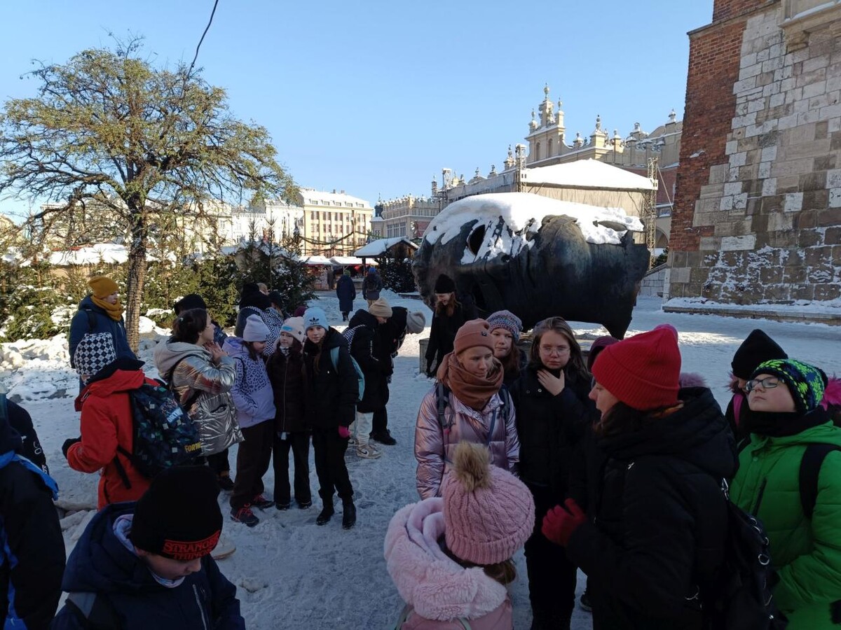 Uczniowie klasy siódmej i piątej sportowej ze świętochłowickiej Szkoły Podstawowej nr 2 spędzili piękny, zimowy dzień na wycieczce w Krakowie.