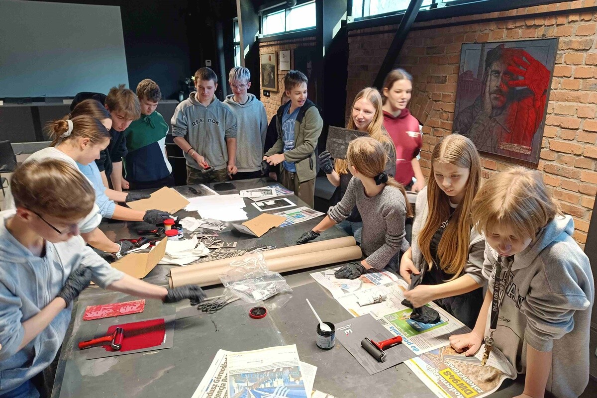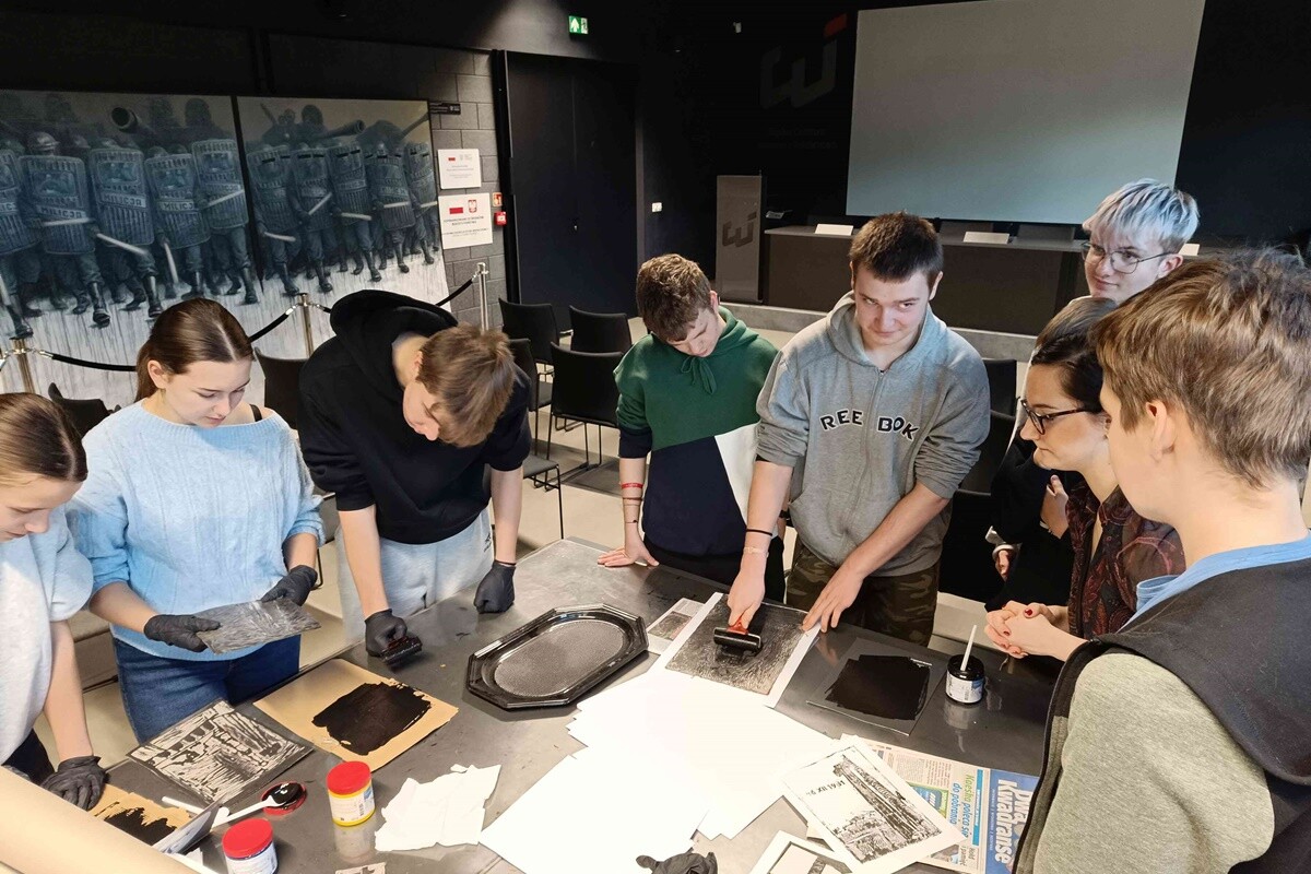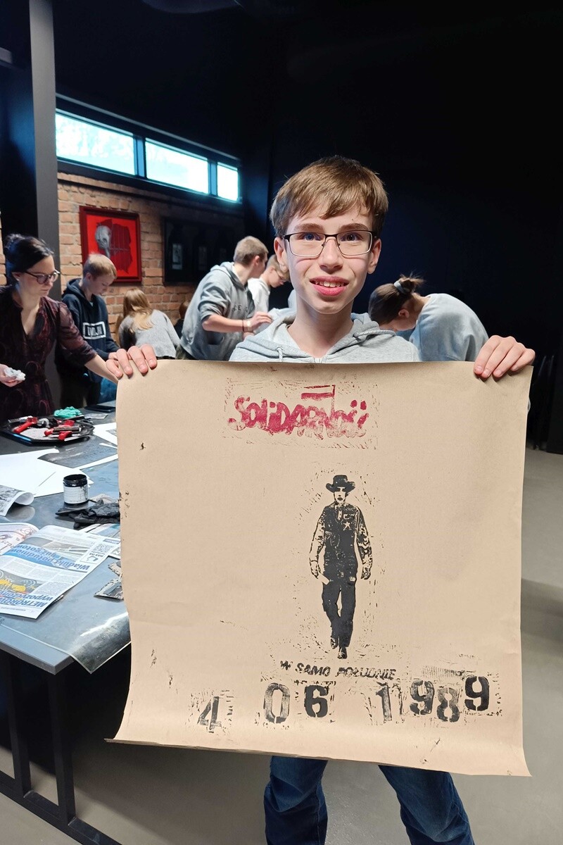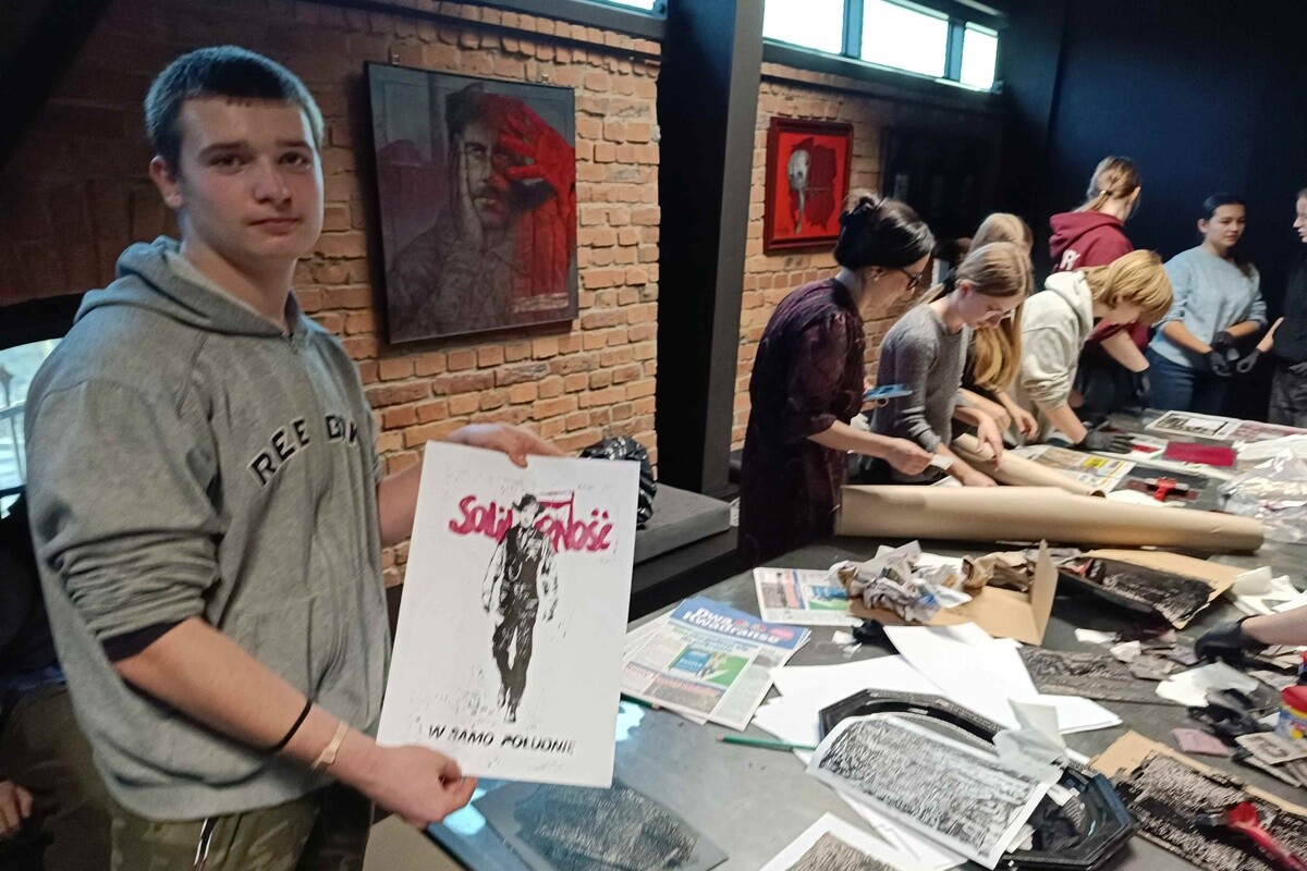 Na zakończenie uczniowie wzięli udział w warsztatach „Podziemna drukarnia”, podczas których każdy mógł stworzyć własną strajkową ulotkę lub plakat.