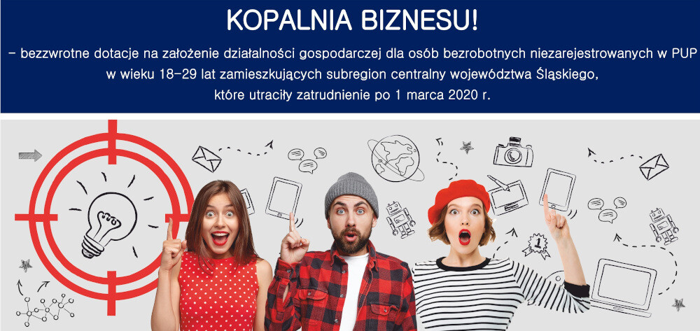 Pandemia COVID-19 i idące za tym zamrożenie gospodarki, m.in. w branży hotelarskiej, turystycznej, czy też gastronomicznej, spowodowała liczne zwolnienia pracowników zarówno tych etatowych, jak i pracujących w ramach umów cywilnoprawnych. W szczególności zwolnienia dotknęły młodych pracowników, najmniej doświadczonych i z najmniejszą perspektywą na znalezienie wysokiej jakości zatrudnienia. Dlatego też Śląski Regionalny Fundusz Poręczeniowy Sp. z o.o. z Katowic wraz z Partnerem Zachodniopomorską Grupą Doradczą Sp. z o.o. ze Szczecina wyszli naprzeciw oczekiwaniom osób młodych z projektem pt. „KOPALNIA BIZNESU! - bezzwrotne dotacje na założenie działalności gospodarczej dla osób bezrobotnych niezarejestrowanych w PUP w wieku 18-29 lat zamieszkujących subregion centralny województwa Śląskiego, które utraciły zatrudnienie po 1 marca 2020 r.” realizowanym z Europejskiego Funduszu Społecznego w ramach Programu Operacyjnego Wiedza Edukacja Rozwój 2014-2020. Projekt daje szansę osobom młodym na założenie własnej działalności bez konieczności posiadania własnych środków finansowych.