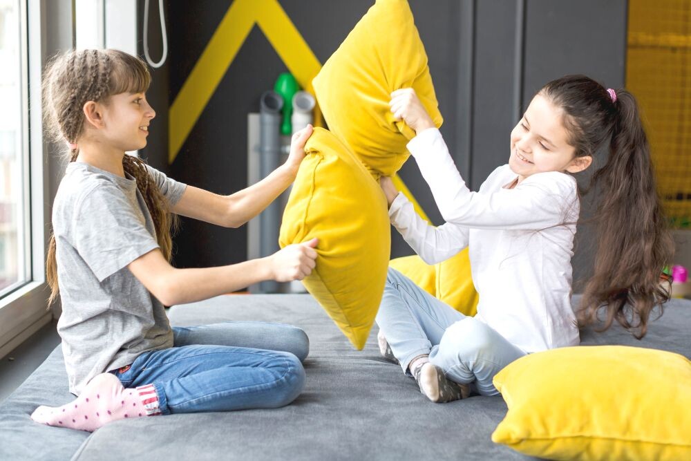 - Bitwa na poduszki – to doskonały pomysł na rozładowanie emocji i wyciszenie przed snem.