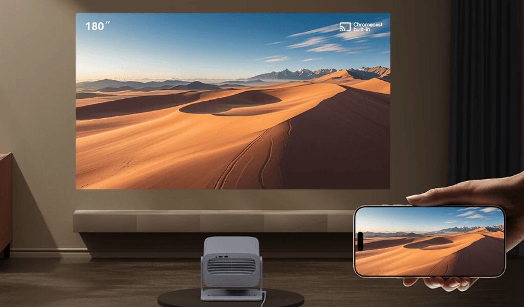 Dzięki Android TV 11, Wanbo Vali 1 staje się pełnoprawnym centrum multimedialnym. Użytkownik ma dostęp do popularnych platform takich jak Netflix, YouTube, Amazon Prime Video czy Disney+, a obsługa głosowa pozwala szybko wyszukiwać treści bez konieczności wpisywania haseł z pilota. Wbudowany Chromecast umożliwia przesyłanie obrazu z telefonu lub laptopa, co rozszerza możliwości urządzenia o gry, zdjęcia i prezentacje. Dla graczy przygotowano tryb o obniżonym opóźnieniu, który poprawia komfort rozgrywki. Choć Vali 1 nie jest dedykowanym projektorem gamingowym, to dla okazjonalnych sesji w gry konsolowe lub komputerowe sprawdzi się całkiem dobrze. Dzięki dużemu ekranowi i szybkiemu czasowi reakcji można poczuć się jak w wirtualnym kinie, które reaguje na każdy ruch kontrolera.