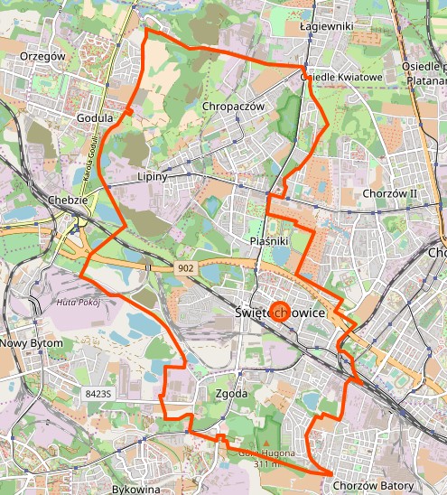 - Graniczy z: Rudą Śląską, Chorzowem i Bytomiem