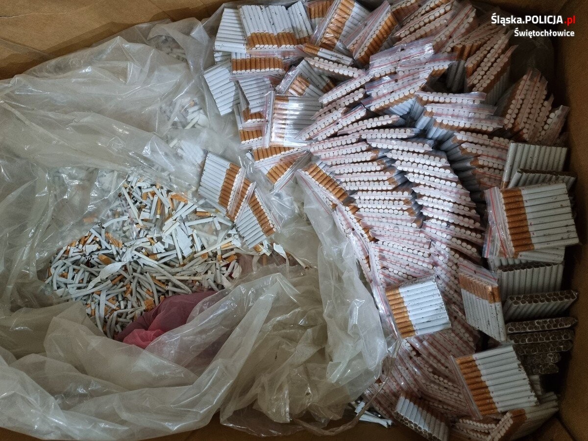 Stróżom prawa nie umknął spory karton wypełniony wyrobami tytoniowymi bez polskich znaków akcyzy. W nim znajdowały się pojedyncze papierosy, pakowane w woreczki strunowe oraz worek wypełniony tytoniem. Łącznie kryminalni zabezpieczyli ponad 21 tys. sztuk papierosów wyprodukowanych domowym sposobem i bez banderol na opakowaniach i tytoń. W trakcie czynności policjanci zabezpieczyli jeszcze wagę elektroniczną i kilka telefonów komórkowych. Ponadto znaleźli prawie 80 tys. zł w gotówce, w tym również w obcej walucie.