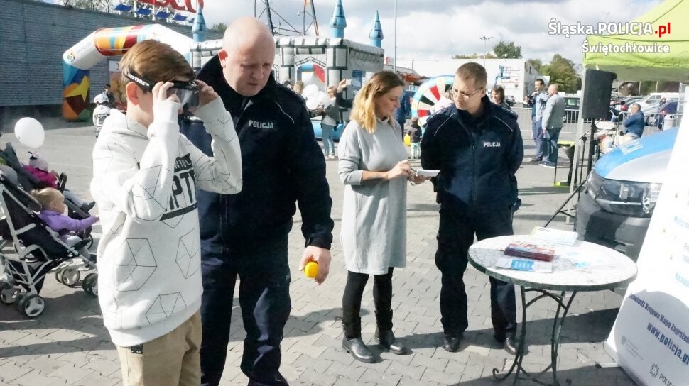 Kolejny raz na terenie Świętochłowic zorganizowano specjalne stoisko profilaktyczne. Policjanci z tutejszej komendy, w ramach akcji „Aktywna Jesień”, przygotowali dla mieszkańców miasta punkt, na którym mogli dowiedzieć się m.in. czym jest Krajowa Mapa Zagrożeń Bezpieczeństwa oraz aplikacja Moja Komenda. Każdy uczestnik mógł także za pomocą specjalnych gogli sprawdzić jak zmienia się nasza percepcja po spożyciu alkoholu lub substancji odurzających. Nie zabrakło także policyjnych gadżetów dla najmłodszych oraz pamiątkowych zdjęć. Obecni na miejscu dzielnicowi oraz profilaktycy rozdawali elementy odblaskowe oraz odpowiadali na pytania mieszkańców związane z bezpieczeństwem.