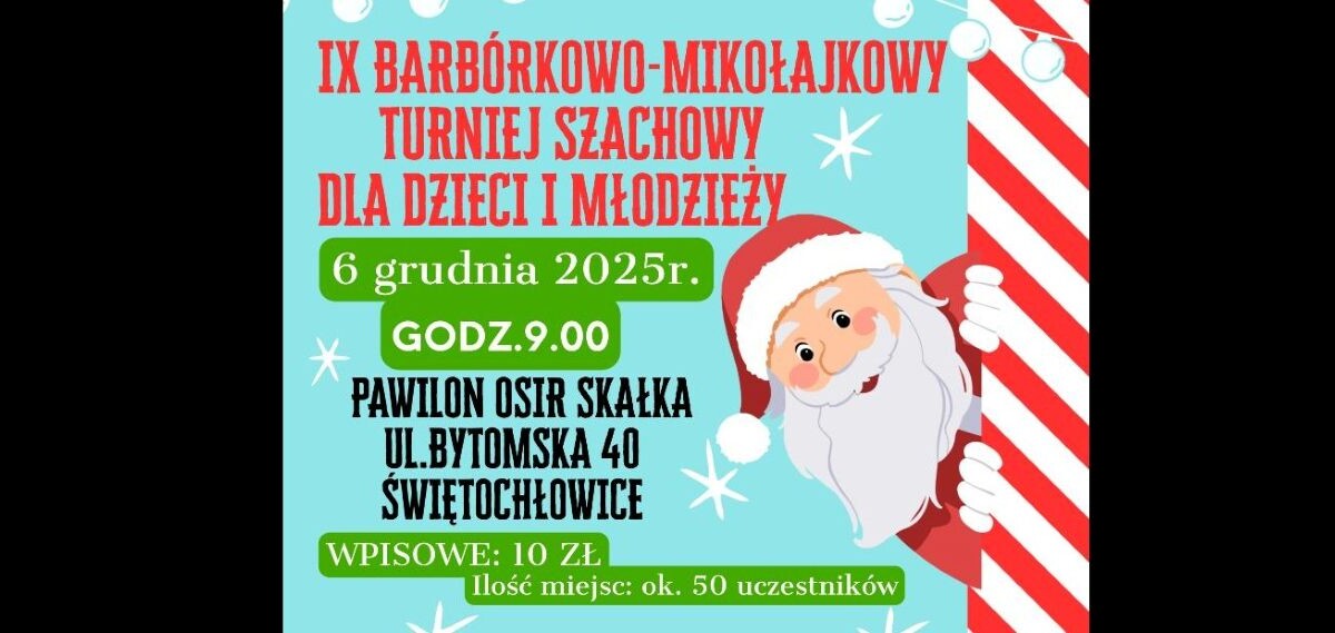 6 grudnia w Świętochłowicach odbędzie się IX Barbórkowo-Mikołajkowy Turniej Szachowy dla dzieci i młodzieży. Czeka sportowa rywalizacja i świąteczna atmosfera.