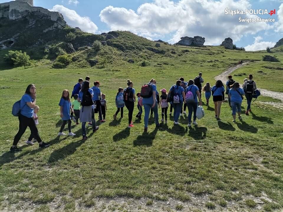 W ostatni weekend wakacji odbyła się jednodniowa wycieczka zorganizowana w ramach projektu profilaktyczno-turystycznego. Oprócz policjantki ze świętochłowickiej komendy oraz przedstawicieli miejscowego SOW „Przystań”, w wyjeździe na teren Jury Krakowsko-Częstochowskiej uczestniczyły dzieci i młodzież zamieszkująca Świętochłowice oraz ich rodzice i opiekunowie. Wszystko za sprawą przedsięwzięcia realizowanego przez świętochłowicką Policję wspólnie z miejscowym Specjalistycznym Ośrodkiem Wsparcia dla Ofiar Przemocy w Rodzinie „Przystań”. Jego celem jest reintegracja społeczna osób uzależnionych i ich rodzin, czyli działalność zmierzająca do odbudowania i umocnienia umiejętności uczestniczenia w życiu społecznym. Na uczestników sobotniego przedsięwzięcia pod nazwą „Można inaczej - bez przemocy, bez używek” czekało wiele atrakcji. Wycieczka zaczęła się od zbiórki na ul. Chorzowskiej. Następnie łącznie 38 uczestników wyruszyło autokarem w trasę, kierunek - Jura Krakowsko - Częstochowska. Przygoda rozpoczęła się od zwiedzania ruin Zamku w Olsztynie. Korzystając z pięknej i słonecznej pogody, sympatycy pieszych wędrówek, spróbowali swoich sił, przemierzając szlakami Jury. Na kolejnym etapie wycieczki znalazł się także szczyt nazywany Jurajskim Małym Giewontem, a mowa tutaj o Górze Biakło, wznoszącej się nad Olsztynem na wysokość 340 metrów nad poziomem morza. Na koniec uczestnicy przejechali do Przybynowa, gdzie na wszystkich czekała główna część wyjazdu, czyli ognisko oraz zajęcia profilaktyczne dla uczestników i warsztaty mydlarskie, zwiedzanie Skansenu, odwiedziny i karmienie zwierząt. Oprócz pogadanki profilaktycznej o używkach, przemocy i emocjach, świętochłowicka policjantka promowała zdrowe życie, wolne od alkoholu i narkotyków poprzez sportowy tryb życia. Dla młodzieży i ich rodziców zorganizowane były różnego rodzaju gry i konkursy, w tym zabawa w „zbijaka”.