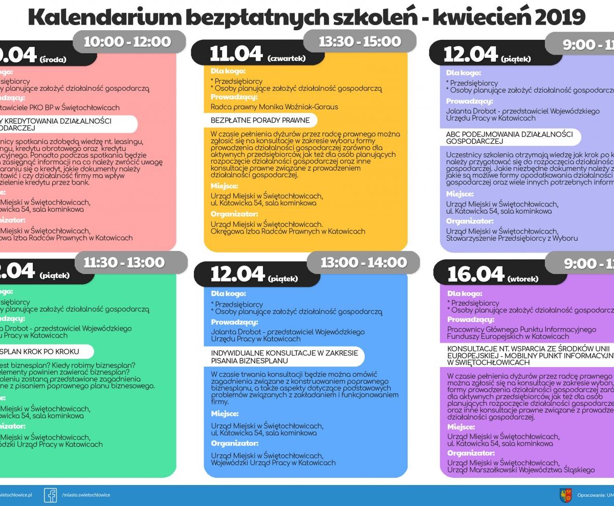 Zachęcamy do zapoznania się z kalendarium bezpłatnych szkoleń