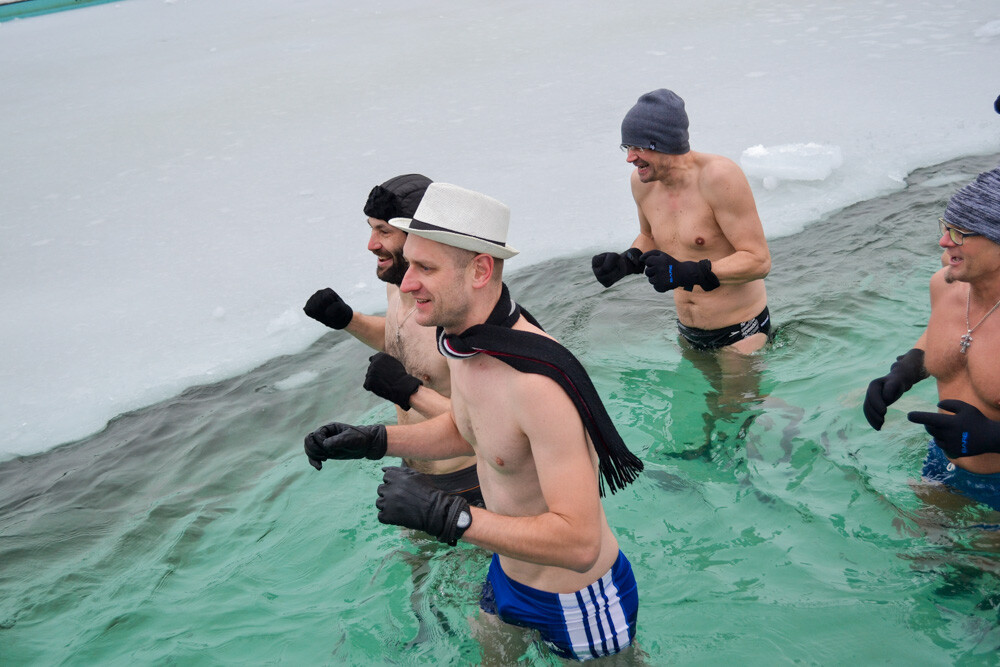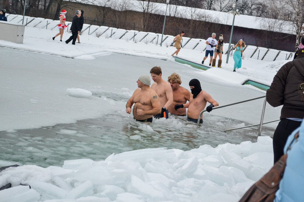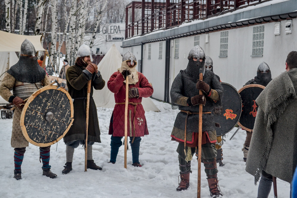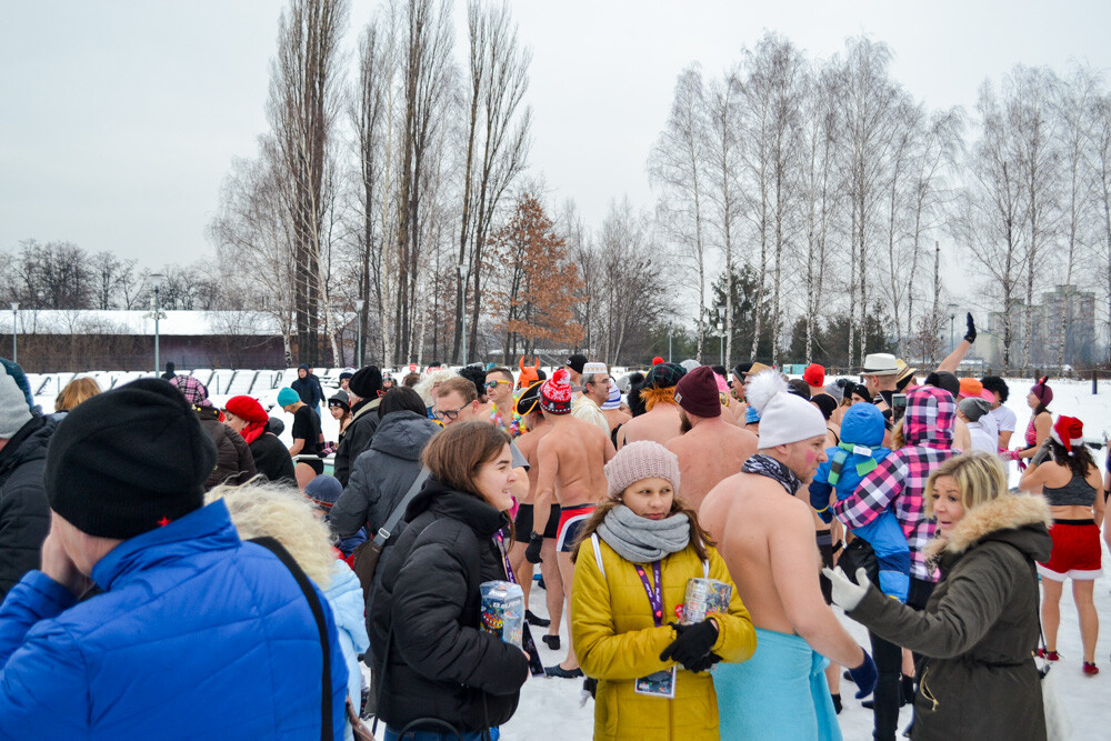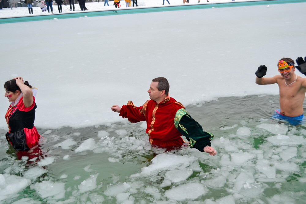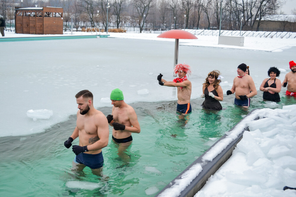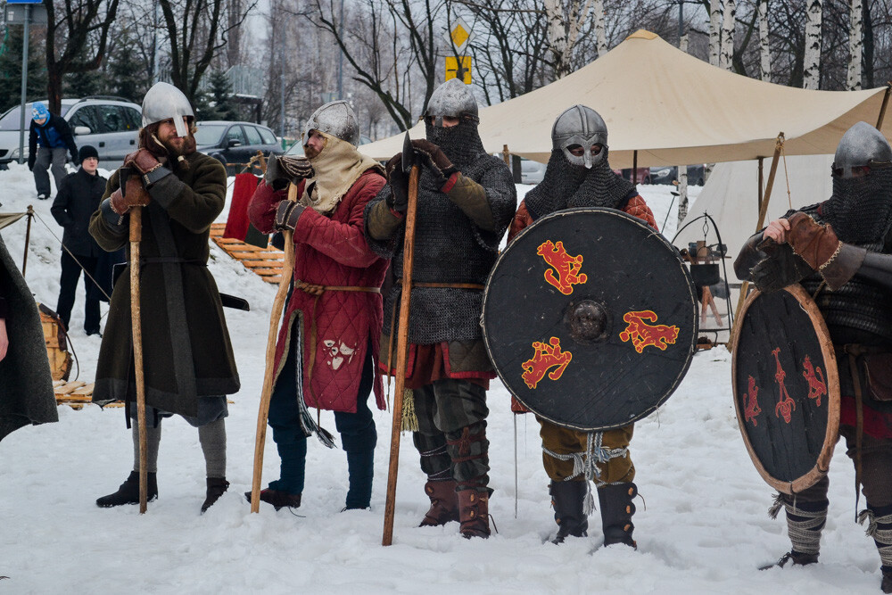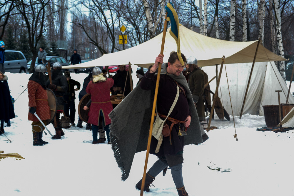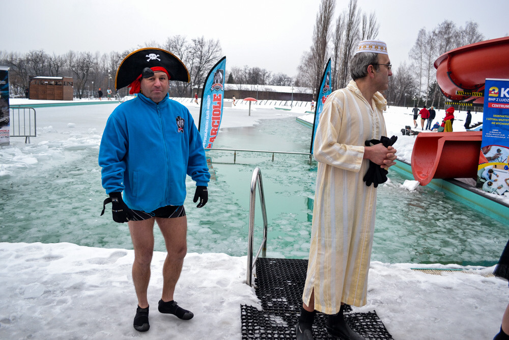 Około godziny 13 do jednego z basenów (wcześniej skuto na nim lód) weszło ponad 200 morsów, z prezydentem Danielem Begerem i grupą Harciole na czele. Pół godziny później podziwialiśmy walkę w wiosce wojów. Starli się ze sobą Rus i jeden z Normanów, którzy pojedynkowali się na topory bojowe.