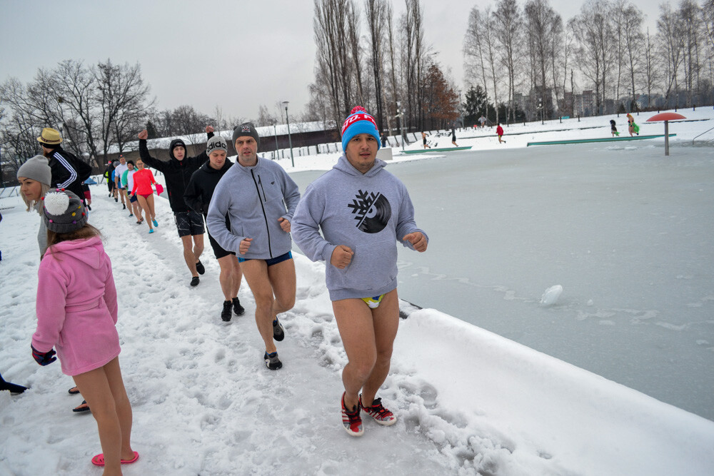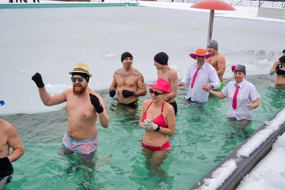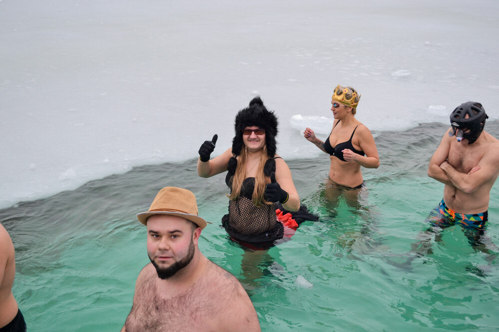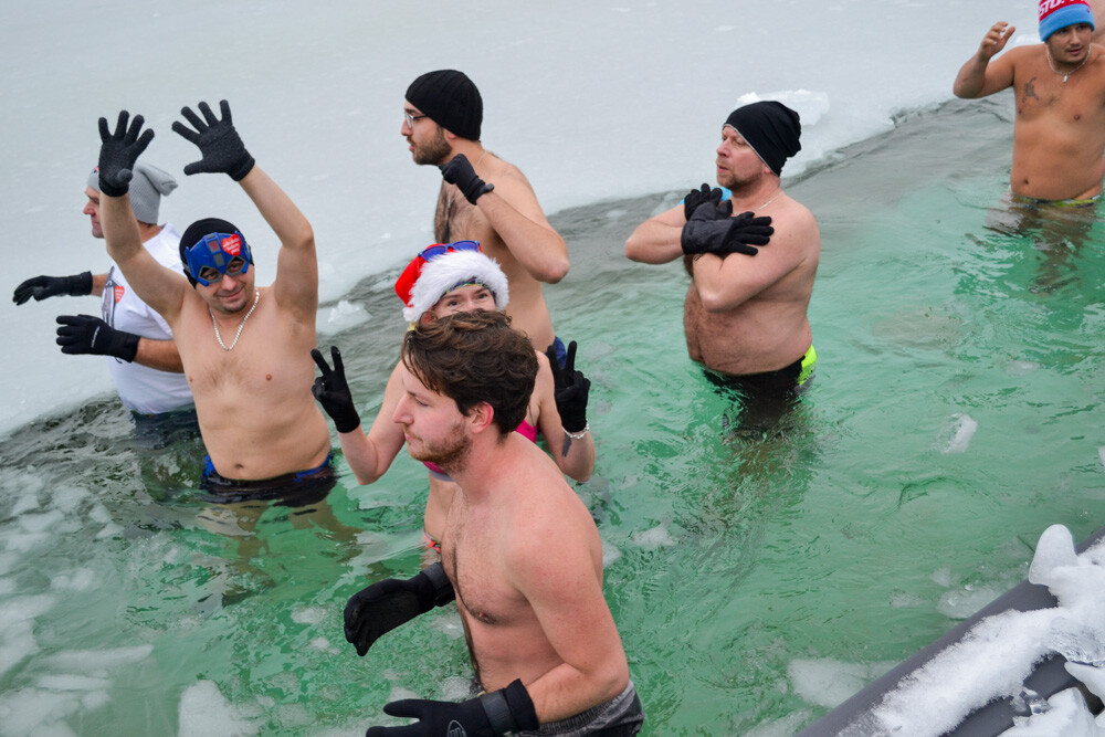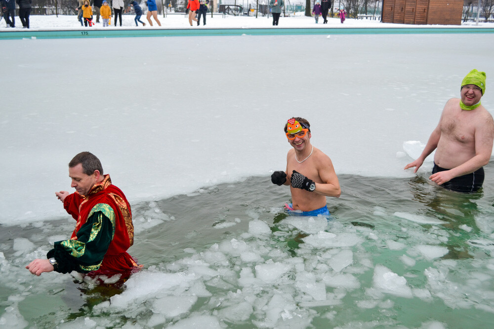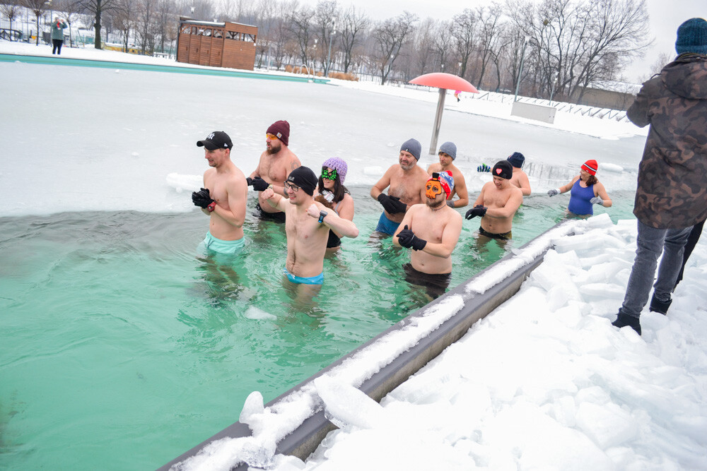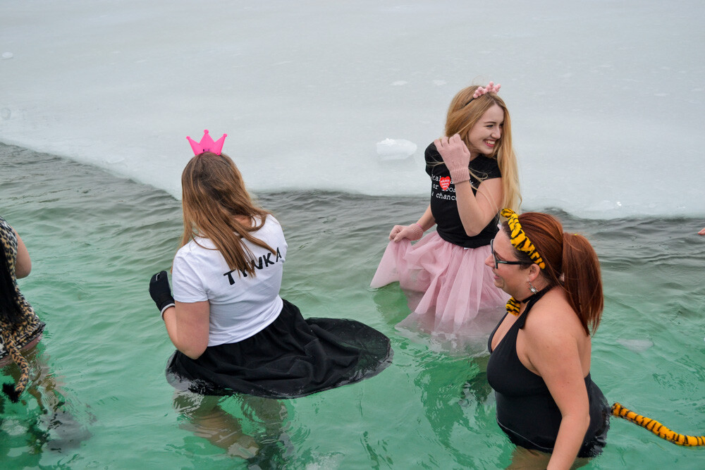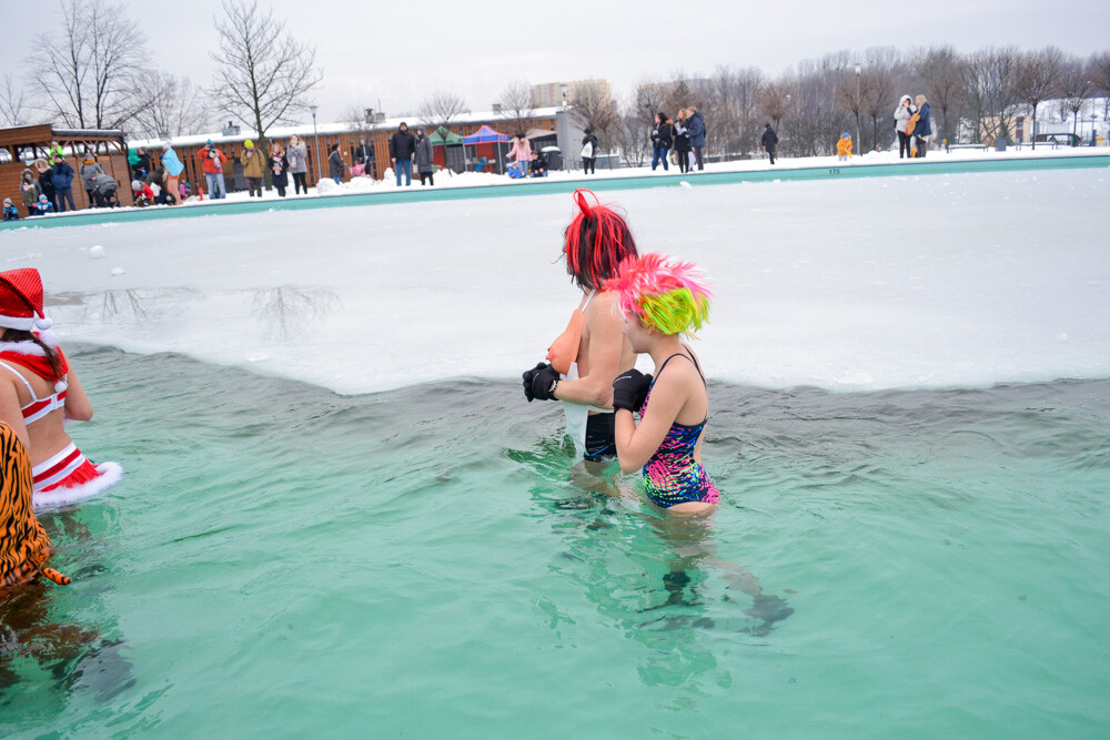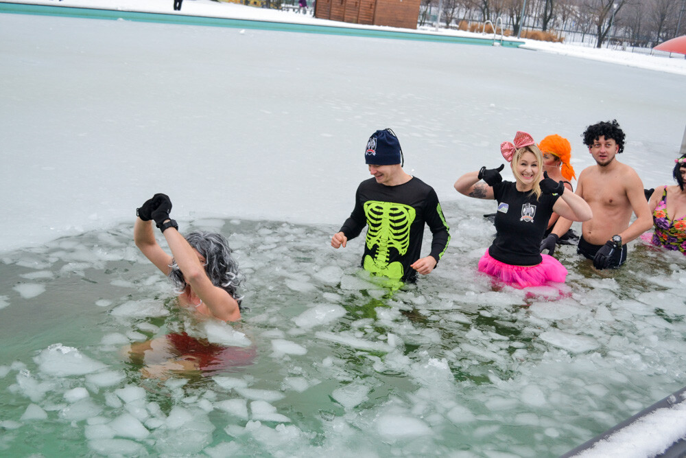 Około godziny 13 do jednego z basenów (wcześniej skuto na nim lód) weszło ponad 200 morsów, z prezydentem Danielem Begerem i grupą Harciole na czele. Pół godziny później podziwialiśmy walkę w wiosce wojów. Starli się ze sobą Rus i jeden z Normanów, którzy pojedynkowali się na topory bojowe.
