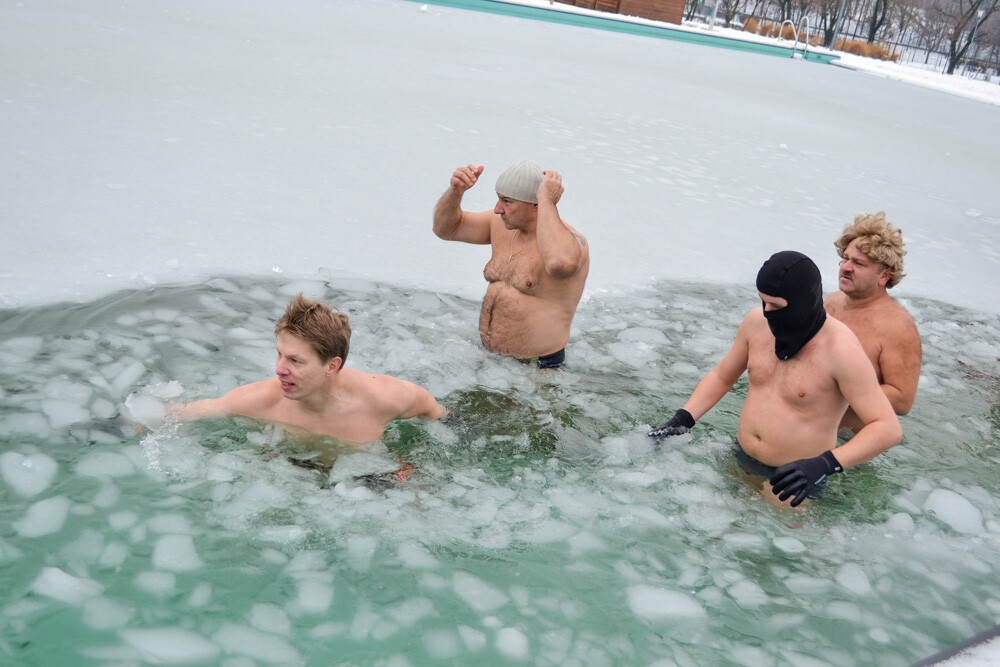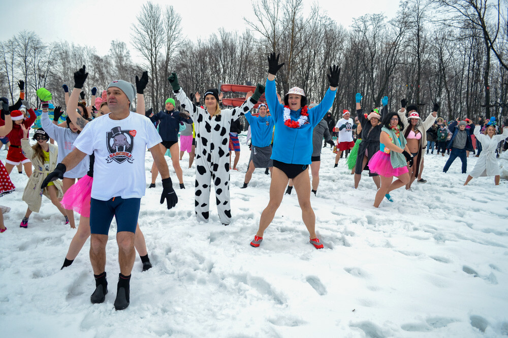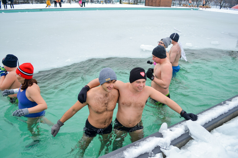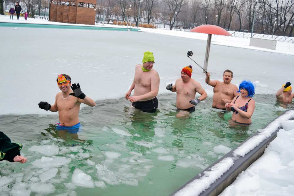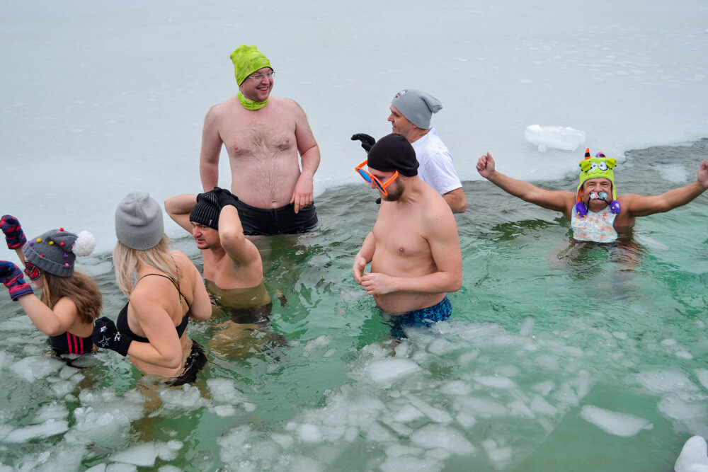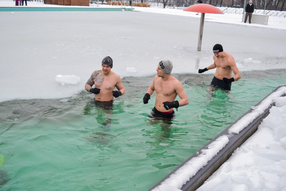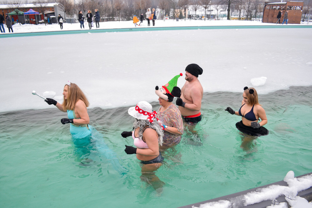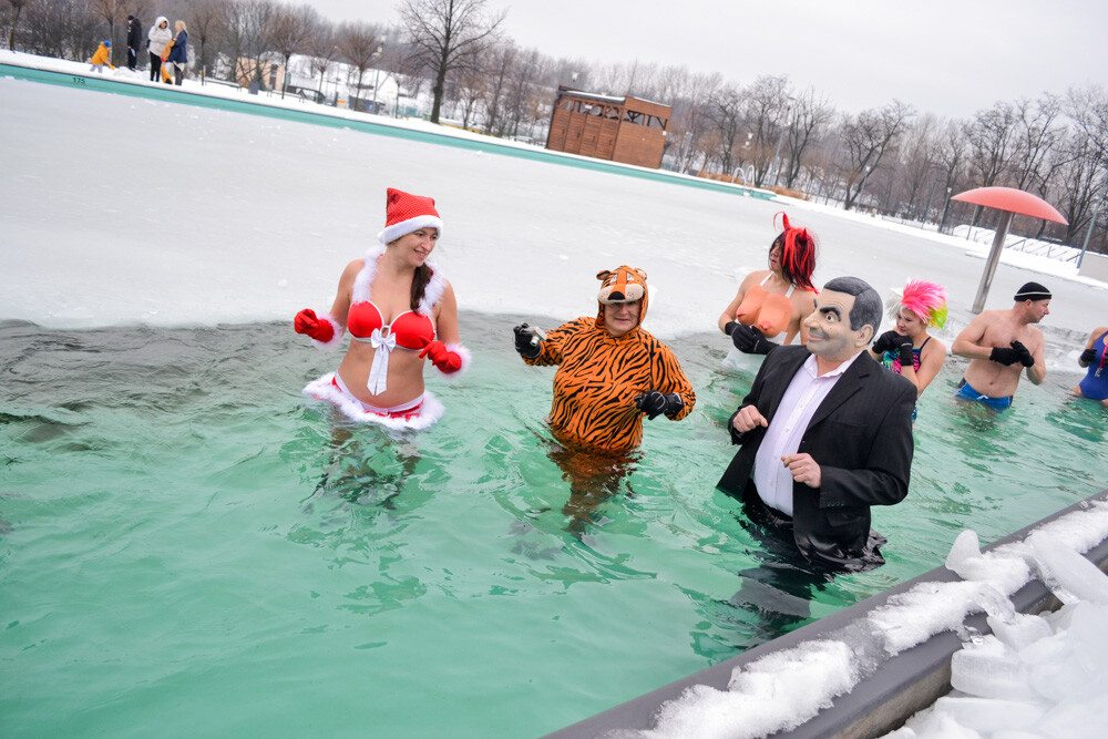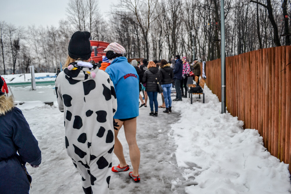 Około godziny 13 do jednego z basenów (wcześniej skuto na nim lód) weszło ponad 200 morsów, z prezydentem Danielem Begerem i grupą Harciole na czele. Pół godziny później podziwialiśmy walkę w wiosce wojów. Starli się ze sobą Rus i jeden z Normanów, którzy pojedynkowali się na topory bojowe.