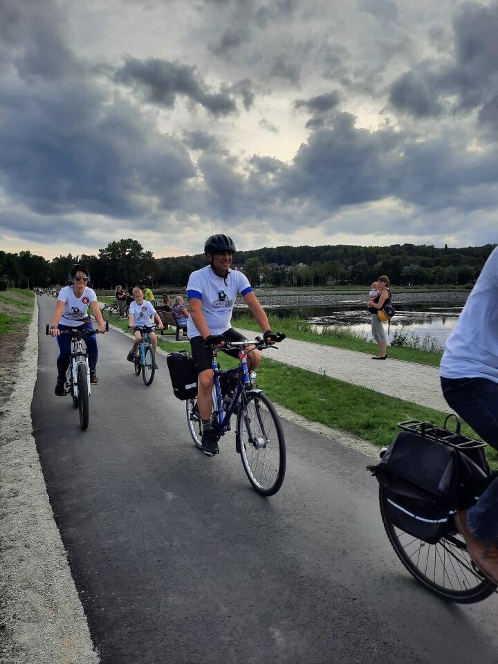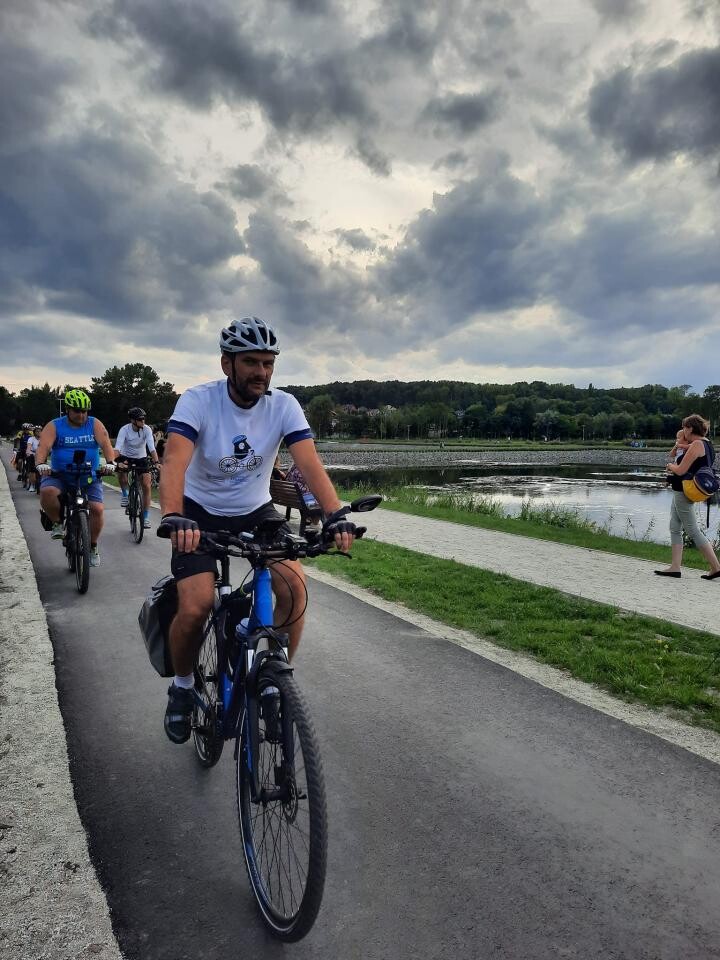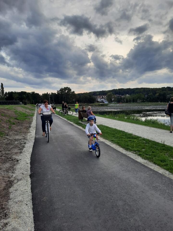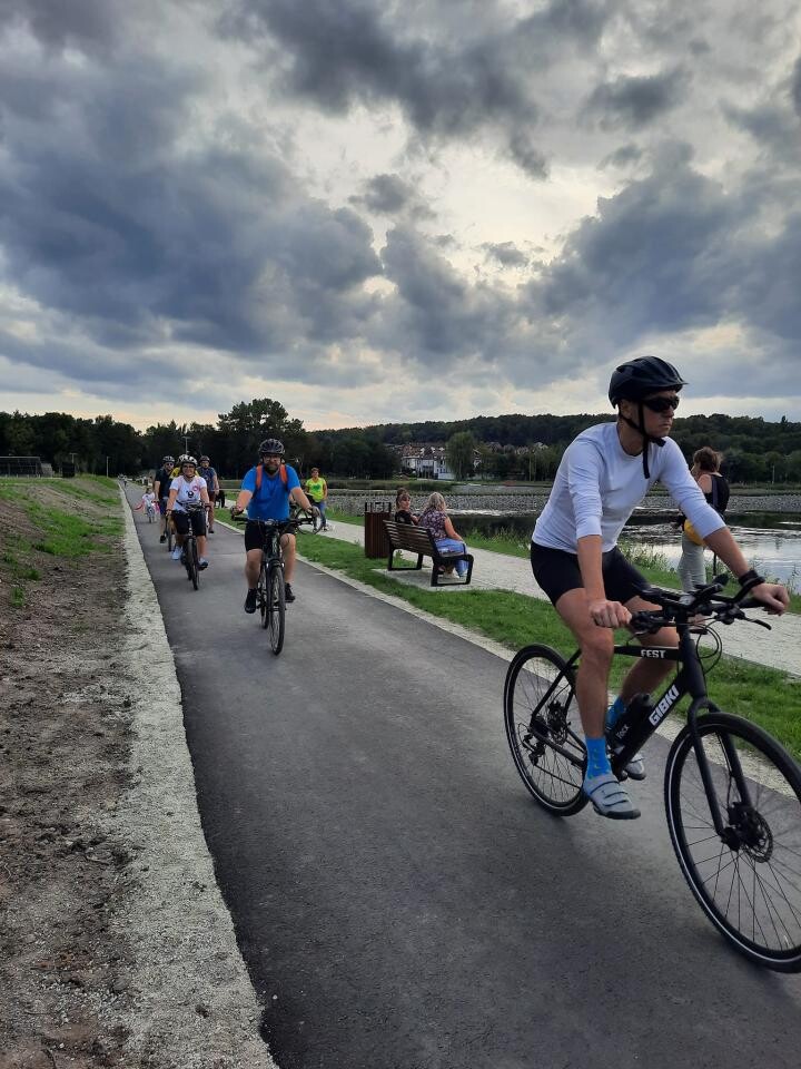 Na ścieżkach wokół stawu tłumy rowerzystów cieszyły się doskonałą pogodą i malowniczymi widokami. To doskonała okazja, by wyjść na świeże powietrze i spędzić czas aktywnie, korzystając z jednocześnie przyjaznego dla środowiska środka transportu.