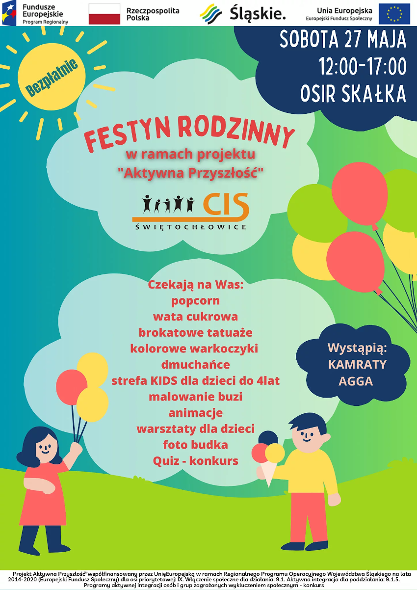 CIS w Świętochłowicach zaprasza mieszkańców na festyn rodzinny w ramach projektu "Aktywna Przyszłość" dofinansowanego przez Europejski Fundusz Społeczny.